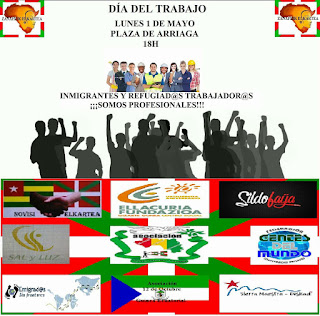 Con motivo del día internacional de las personas trabajadoras, este lunes 1 de mayo, la asociación Zanafrik Elkartea con el apoyo de Novisi Elkartea, Fundación Ellacuría, Sildofaya, Sal y Luz, Federación “Gentes del Mundo”, Emigrados Sin Fronteras, Asociación “12 de Octubre” de Guinea Ecuatorial y Sierra Maestra-Euskadi, han realizado una concentración en la Plaza del Teatro Arriaga (Bilbao) con el objetivo de visibilizar y reconocer la profesionalidad de las personas migrantes y refugiadas que en muchas ocasiones no se toman en cuenta por el mero hecho de «ser de fuera». «Con una inserción laboral y profesional real, ganamos tod@s»