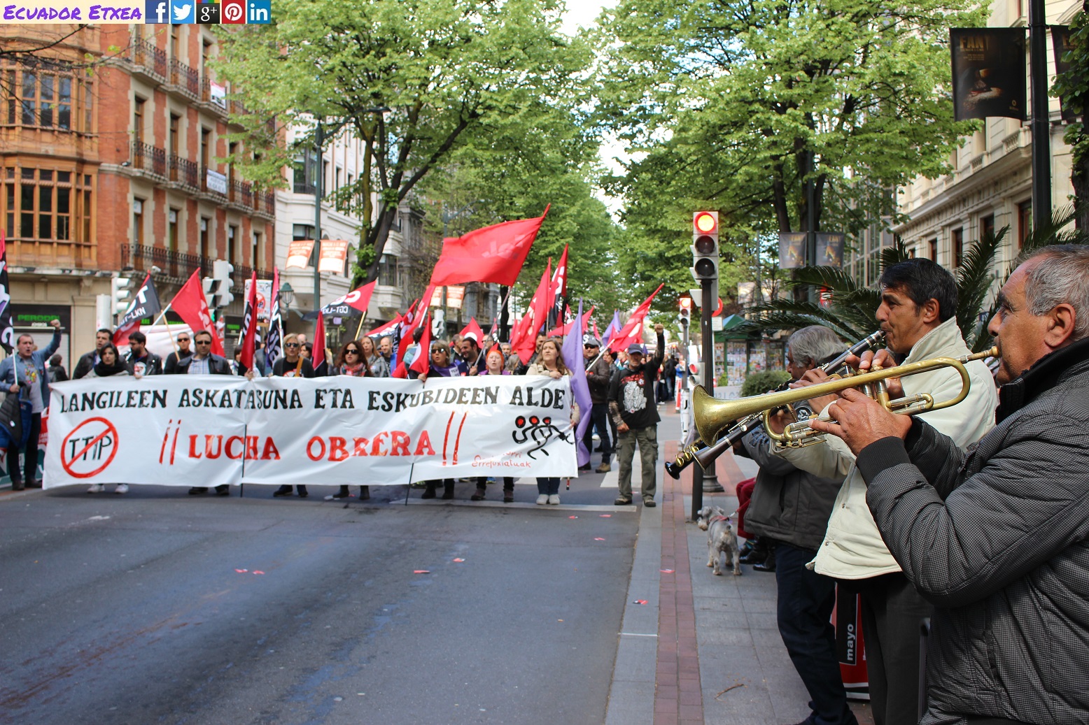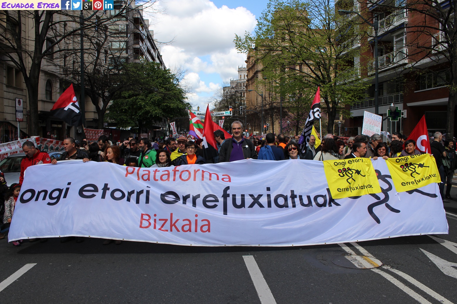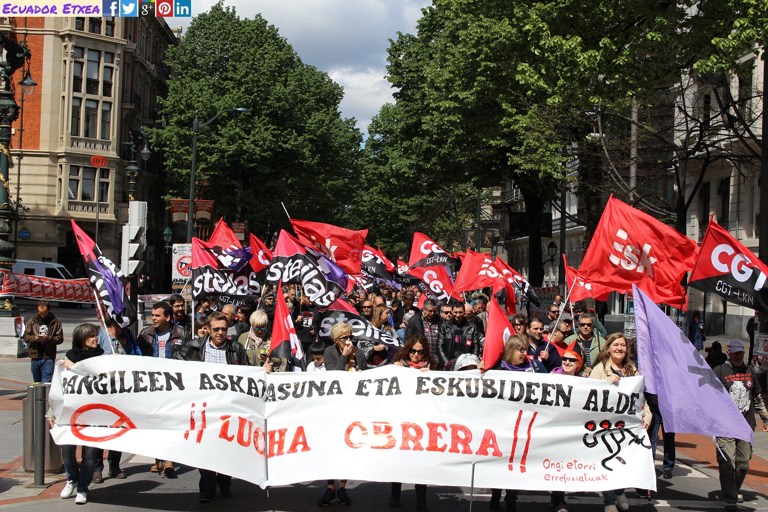Como cada año hoy 1 de mayo se celebra el Día Internacional de las personas trabajadoras y los sindicatos vascos han llenado las calles de Bilbao exigiendo que se cumplan los derechos laborales. Por otra parte, se ha hecho una especial mención a las personas refugiadas y al NO al TTIP.