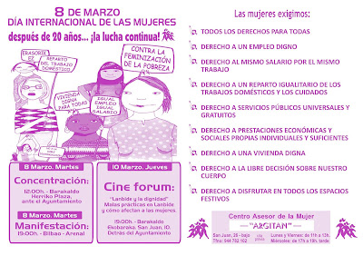 Con motivo del Día Internacional de la Mujer, 8 de Marzo, El Centro Asesor de la Mujer de Barakaldo “ARGITAN” Emakumeentzako Aholku Etxea hemos organizado una campaña que gira en torno al lema “después de 20 años…¿la lucha continúa!” . Argitan cumple 20 años de existencia.