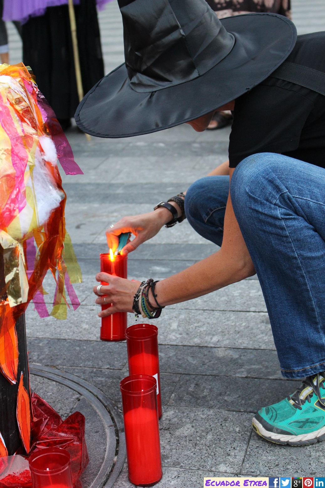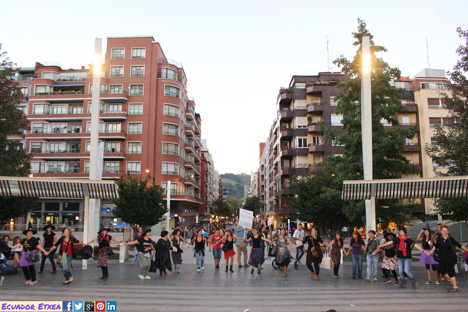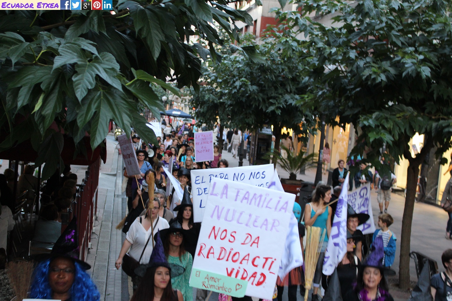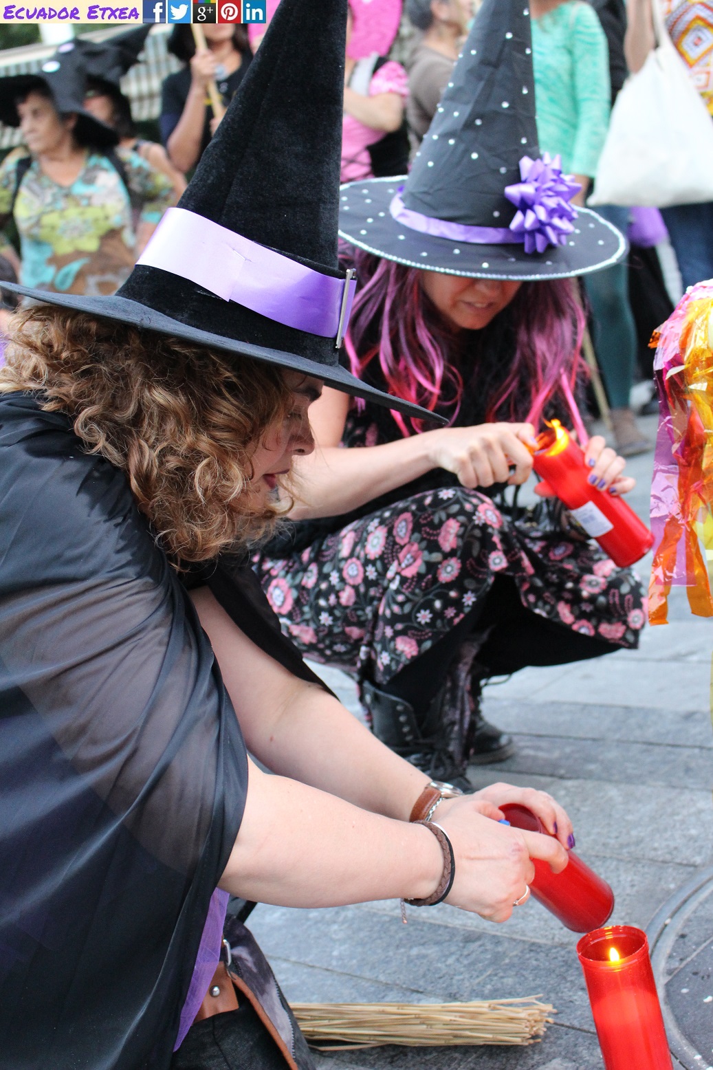 Actividad #2 (en Bilbao) enmarcada dentro de la 4ta acción de la Marcha Mundial de las Mujeres. Kalejira de brujas plurales y diversas (con gorros, pelucas, corsés, crestas), que llega a la Plaza de Indautxu donde se hará un conjuro colectivo y quemarán todo aquello que impone la heteronormatividad, y el sistema capitalista en los cuerpos y sexualidades de las mujeres (maniquíes, crucifijos, leyes, tacones, barbies). El recorrido será: Plaza Circular-Gran Vía-Moyua-Ercilla-Plaza Indautxu.