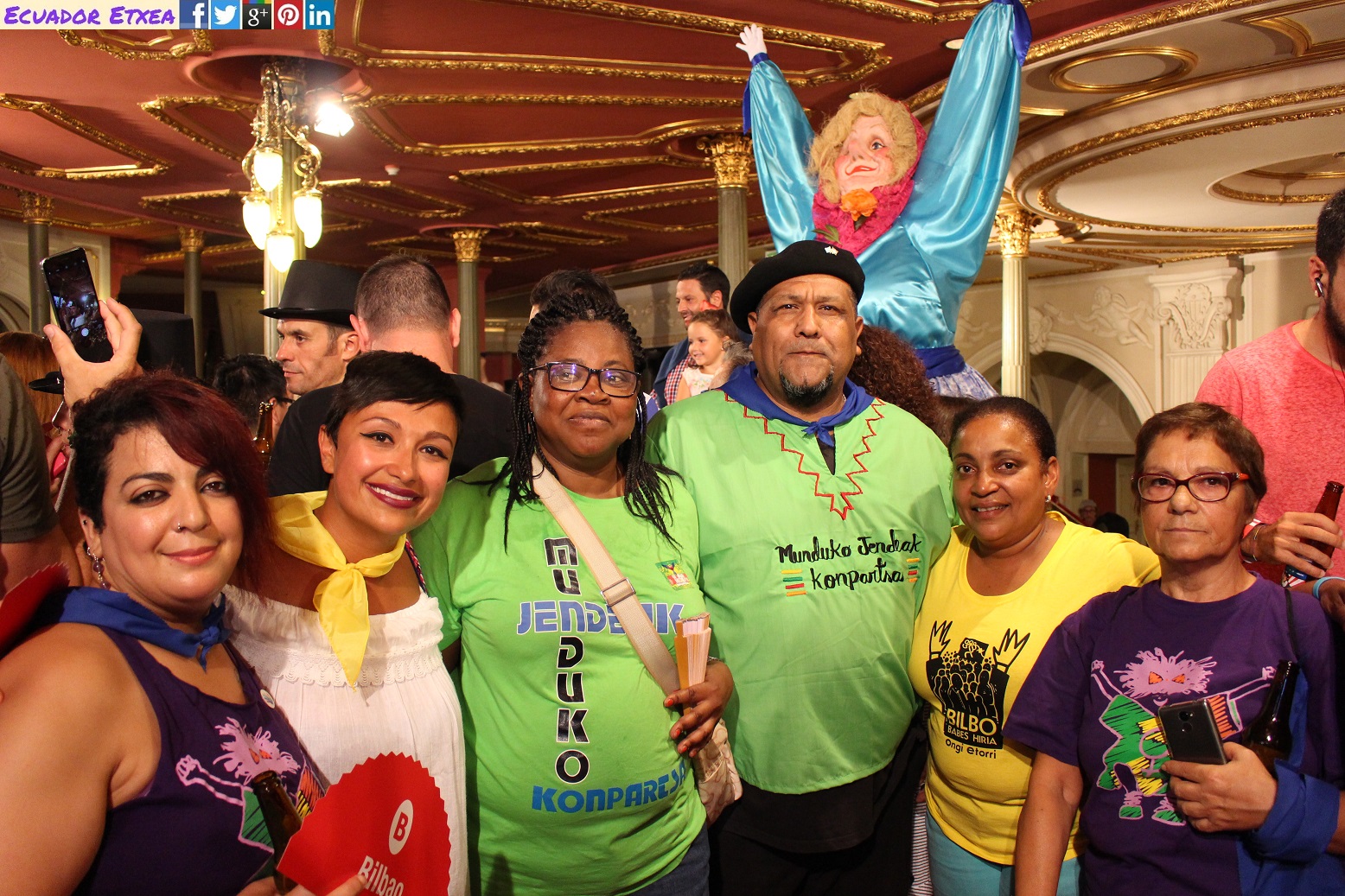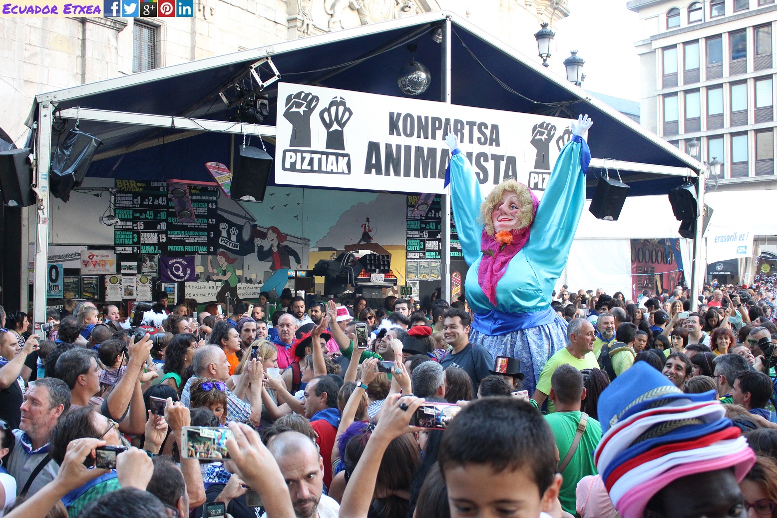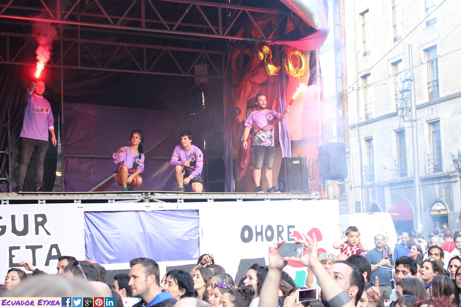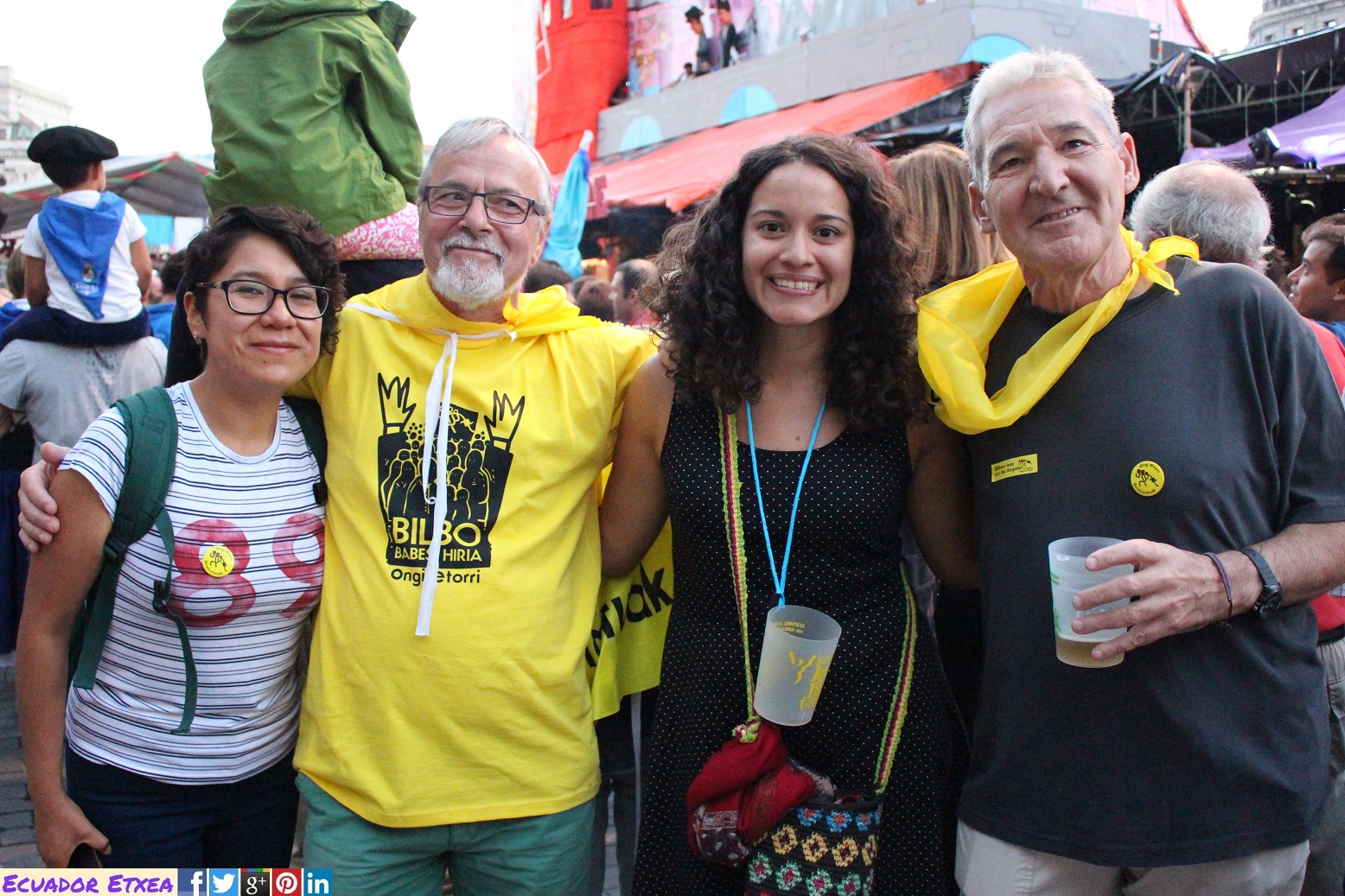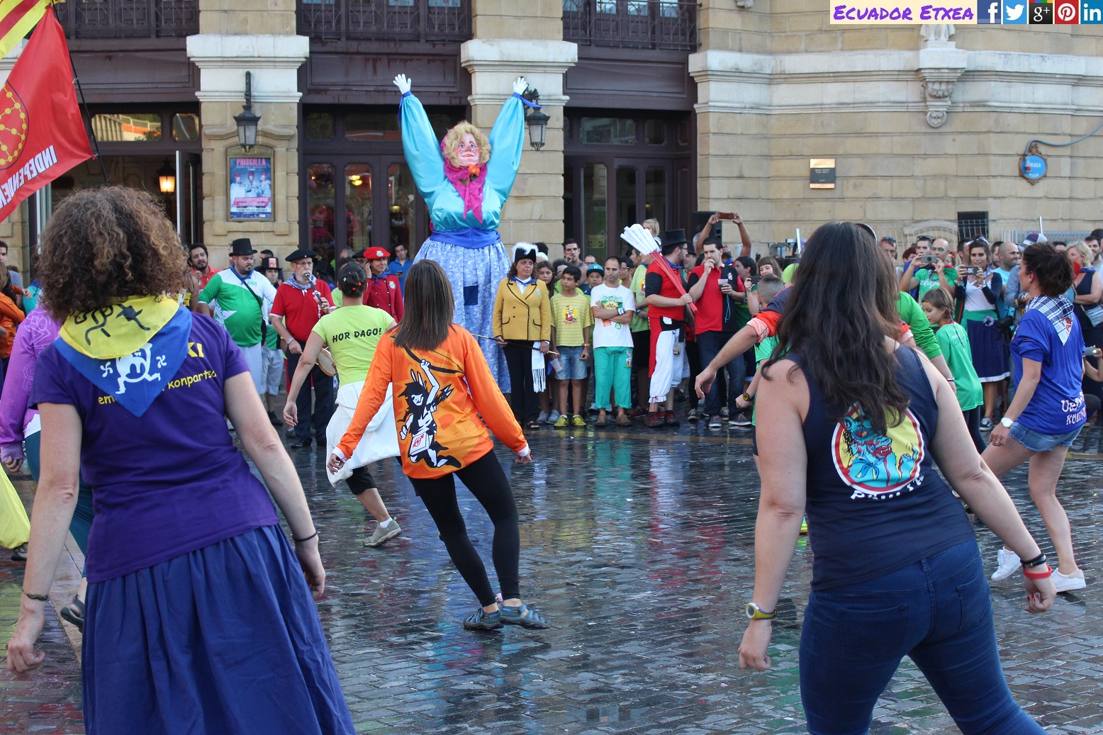 Este año ha sido Nati Ovelleiro, representante de la plataforma en favor de la acogida de las personas refugiadas y migrantes “Ongi Etorri Errefuxiatuak-Bizkaia”, la encargada de leer el pregón junto a Ane Ortiz, miembro de la comparsa Askapeña, ha sido quien ha lanzado el txupin.