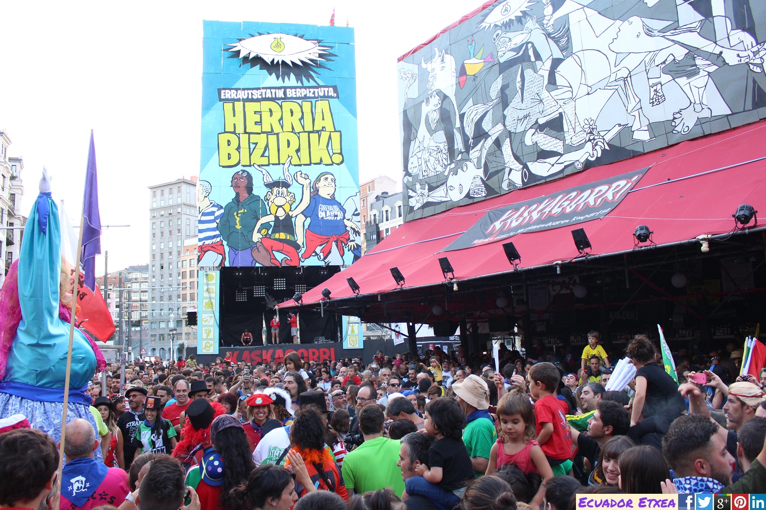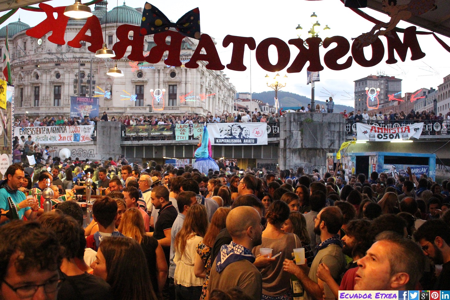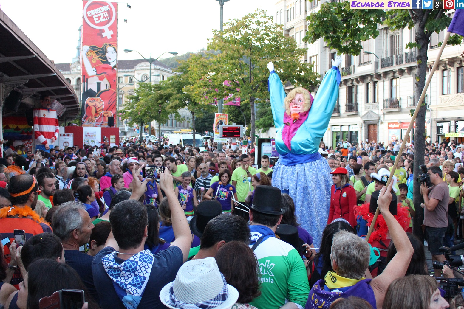 La pregonera ha subrayado que «nadie es ilegal en Bilbao», versionando la popular canción ‘Egun da Santimamiña’ del cantautor vasco Mikel Laboa. De la misma forma, ha reclamado que «menos pedir los papeles y menos Ley Mordaza».