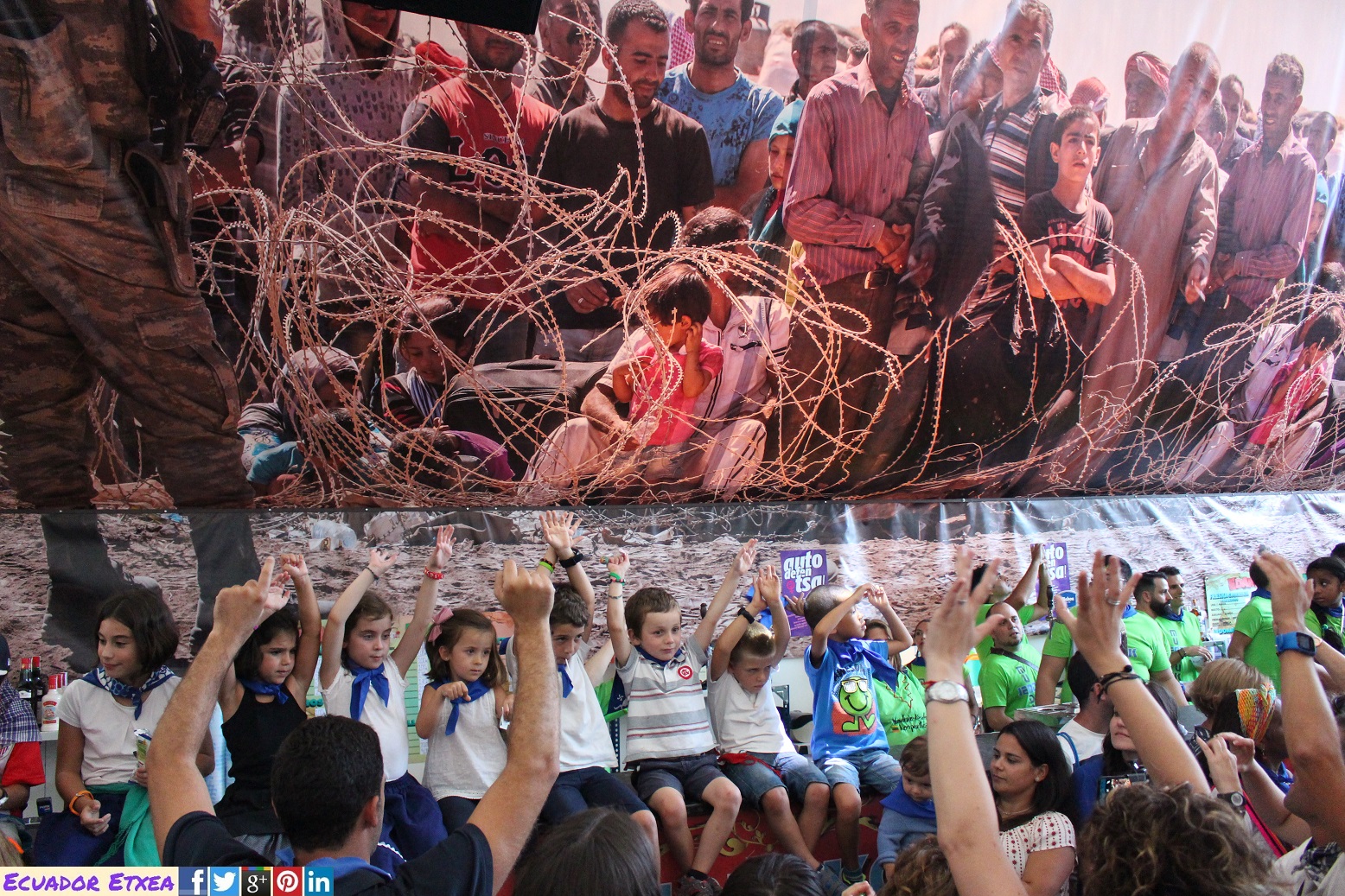 El pregón ha estado marcado por las reivindicaciones a favor de la acogida de las personas refugiadas y migrantes, y en forma de rimas Nati se ha acordado de «los que están aquí, los que quieren estar y también de los que no pueden estar. Bienvenidos todos». En este sentido, ha hecho un llamamiento «contra las verjas, los alambres y las fronteras», y tras pedir «más rimas y menos minas» ha dado las gracias a Bilbao «por abrir sus puertas, como los brazos de Marijaia, no solo en fiestas».