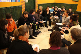 Decenas de mujeres, representantes de organizaciones feministas, colectivos, grupos, sindicatos y agrupaciones políticas entre las que estaban Feministalde, Komite Internazionalistak, ELA, LAB, ESK, Steilas, Galtzagorri, Mujeres del Mundo Babel, Brujas y Diversas, Bilgune Feminista, Mugarik Gabe, Sierra Maestra, CEAR-Euskadi, Médicos del Mundo-Euskadi, Marcha Mundial de las Mujeres de Euskal Herria, Feminismos de Desazkundea, Argitan, Asociación de Trabajadoras del Hogar (ATH), Marimatraka Santurtziko Talde Feminista, Ongi Etorri Errefuxiatuak, entre otras, se dieron cita la mañana de este sábado 23 de diciembre en la Ekoetxea de Bilbao, en una asamblea abierta para hablar, diseñar y empezar a trabajar las acciones que se llevarán a cabo para el próximo 8 de marzo, día de la huelga feminista.