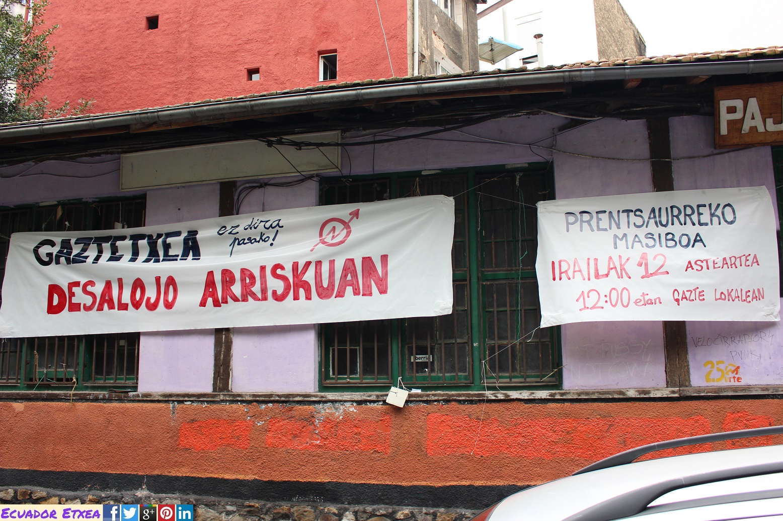 En el año 1991 unas jóvenes soñadoras y luchadoras llenaron de vida y posibilidades las abandonadas calles de Luzarra y Ramón y Cajal. Con la ocupación del local se dio comienzo a un recorrido de 26 años, y que seguro serán más. Convirtieron en escuela el Gazte Lokala al reformar y llenar de color la antigua Carnicería. Unos años después, se abrieron las puertas de la Pajarería y el Mercado, dando continuidad a la revitalización del barrio. En este segundo espacio se creó una sala de cine, una biblioteca vecinal y otros tantos proyectos que han pasado, crecido y culminado en estas paredes. Charlas, debates, acciones, asambleas, proyectos, talleres, comidas, actuaciones musicales, días de trabajo, discusiones y muchas sonrisas de las que el espacio ha sido testigo. Pero sobretodo ha sido testigo del compromiso, el trabajo, el esfuerzo, las ganas, la imaginación, el trabajo colectivo y solidaridad, del odio y del amor, de la organización y la lucha. La autogestión, el barrio y la colectividad han sido y son nuestros pilares; ejemplo de eso es la cuidada relación que tenemos con muchas vecinas. Quizás este sea el problema que tiene el Ayuntamiento. Pero lo tenemos claro, somos muchas las jóvenes con proyectos en mente, el barrio necesita el Gazte Lokala, este espacio es necesario.
