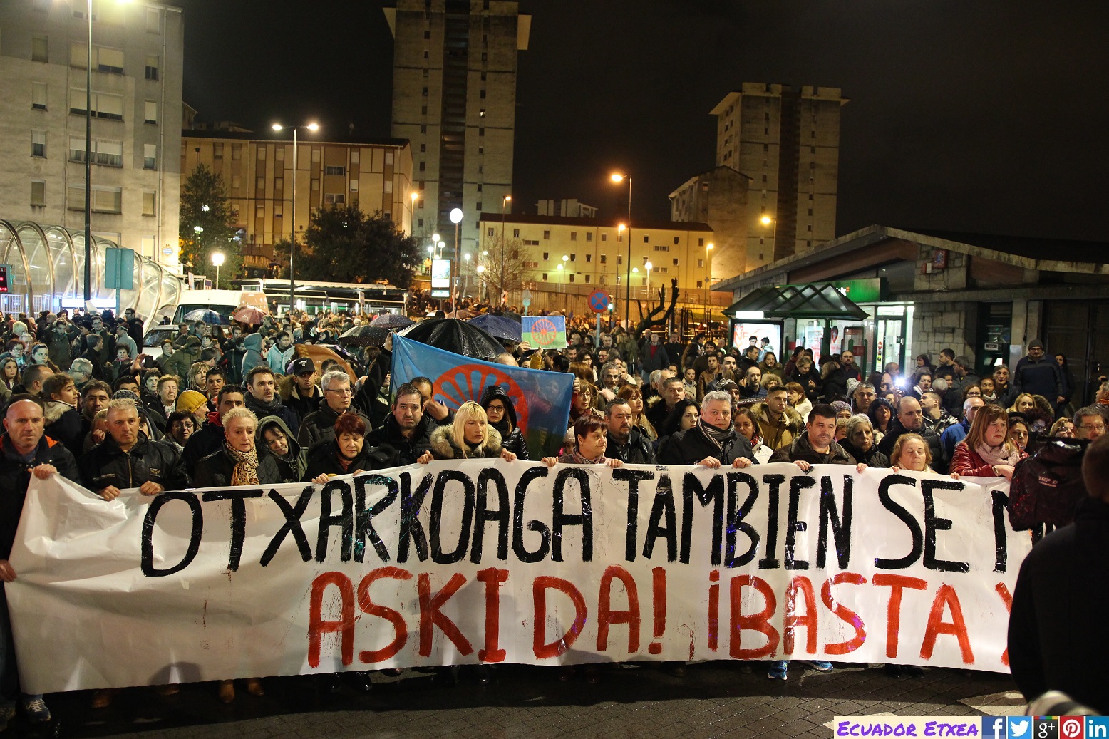 Una multitudinaria manifestación de vecinas y vecinos del barrio de Otxarkoaga (Bilbao) se ha movilizado la noche de este viernes 19 de enero para denunciar los hechos trágicos ocurridos ayer en el barrio. Manifiestan su mayor repulsa por las dos muertes de 2 de sus vecinos. Además se han querido sumar al dolor de sus familiares, amigos y vecinos, y dicen que “¡BASTA YA¡”