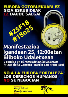 Por último, se señala que aquí en Euskal Herria también hay un muro de la vergüenza en el Puerto de Santurtzi, así como personas migrantes en tránsito, y no migrantes, viviendo en las calles, personas con dificultad para empadronarse y acceder a derechos básicos, trata de personas y otras muchas tragedias cotidianas, que –concluye una portavoz- nos llevan a sumarnos a la convocatoria general y compartir espacio, movilización y lucha entre todas y todos, entre quienes llegamos antes y quienes han llegado después, quienes están de paso y quienes permanecen, porque los derechos deben ser para todas las personas.
