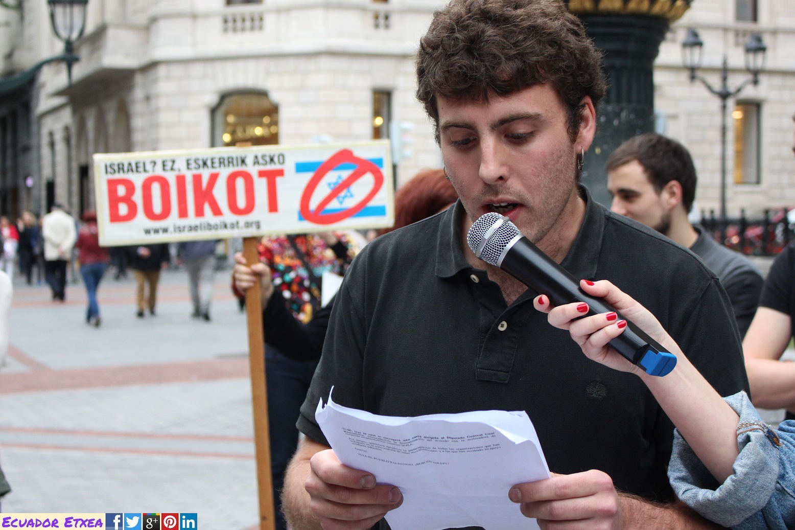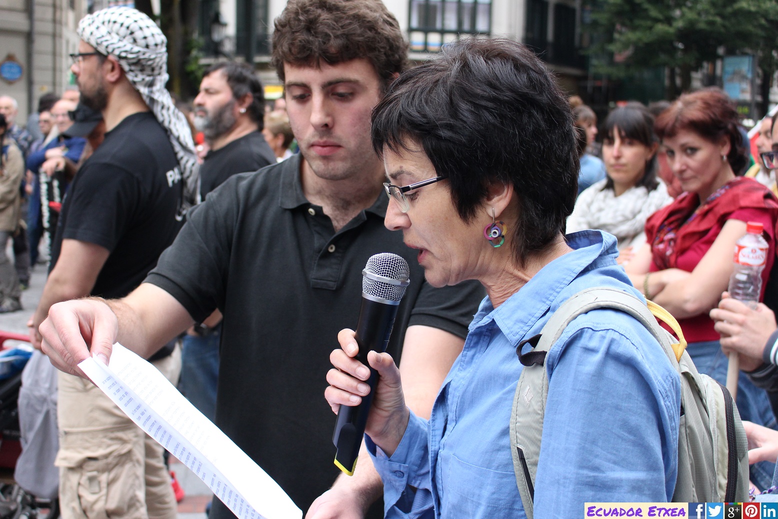 ADHESIONES: Komite Internazionalistak, Askapena, Asociación Palestina Biladi, Mundubat, Paz con Dignidad, SODePAZ, Paz y Solidaridad, IPES, Lumaltik, Ongi Etorri Errefuxiatuak, Bilboko Bilgune Feminista, EHko Emakumeen Mundu Martxa, Asociación Baskale, Sare Antifaxista, Mugarik Gabe, Euskadi-Cuba, Bizilur, ELA, LAB Bilbo, STEILAS, ESK, EHNE, CCOO Euskadi, Ernai, Gazte Kounistak, Sortu Bilbo, Alternatiba, Podemos Euskadi, Ezker Anitza-IU, PCE-EPK.