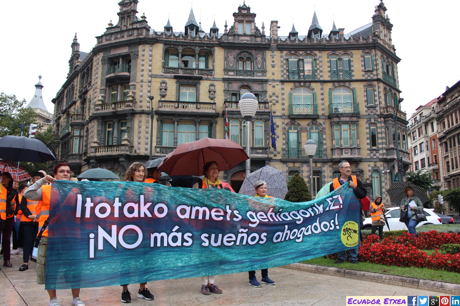 Queremos acoger porque tienen derecho a vivir en paz y porque siendo parte de las causas, queremos y debemos también ser parte de la solución. Los gobiernos europeos están fallando, pero la sociedad civil, no. Estaremos haciendo frente a brotes de racismo y xenofobia, no aceptaremos el comercio de la muerte que parte desde el puerto de Bilbao, haremos de la denuncia política, la desobediencia civil y la solidaridad nuestras herramientas.