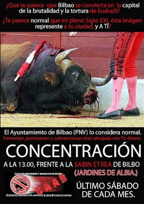 Cada último sábado de mes, nos concentraremos frente a la sede del PNV y pediremos al alcalde Sr. Aburto, el fin de la tauromaquia en nuestra ciudad.