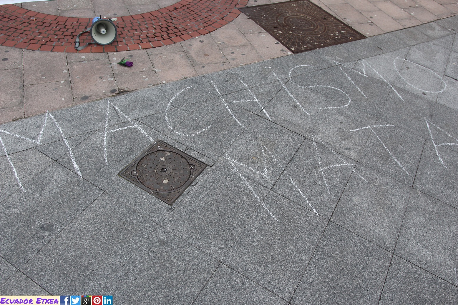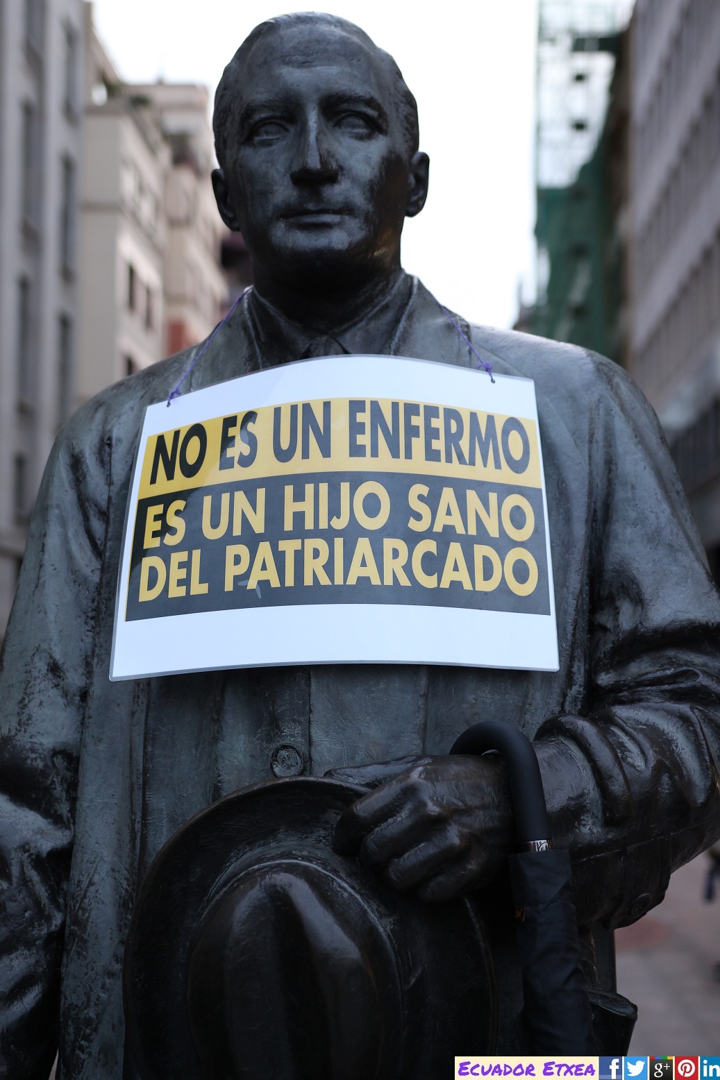 Buenas noches a todas y a todos, gracias por estar aquí, denunciando con vuestra presencia el terrorismo machista. En el pasado año 2017 fueron 70 los cadáveres de mujeres más el de nueve niños y niñas que pesaron sobre las conciencias de estos gobiernos que no hacen absolutamente nada por cambiar esta trágica realidad, 70 seres humanos solo por haber nacido mujeres. Tres en Euskal Herria. Blanca Esther Marqués, en Burlada; Noelia Noemí, en Sestao; Ana Belén Jiménez, en Turiso (Araba); Y Raquel López que fue asesinada en Madrid pero ella era de Eibar.