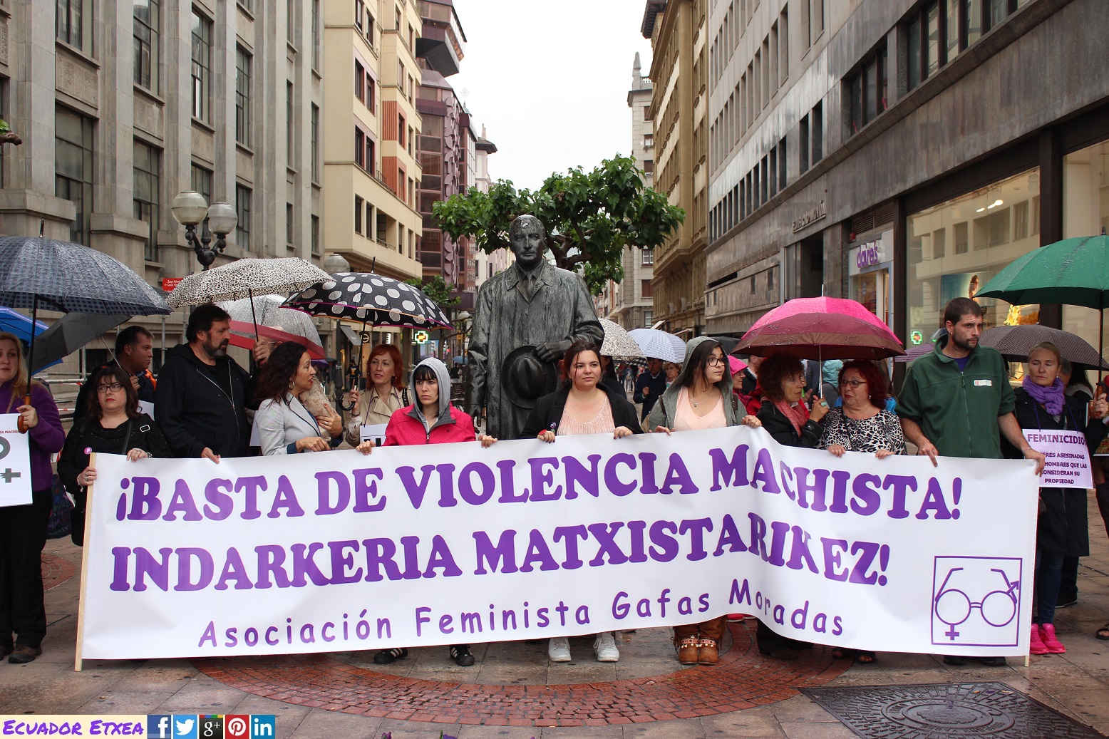 Este lunes 29 de mayo, la asociación feminista “Gafas Moradas” ha realizado en Bilbao, una concentración para denunciar el asesinato machista de 3 mujeres durante este pasado fin de semana.