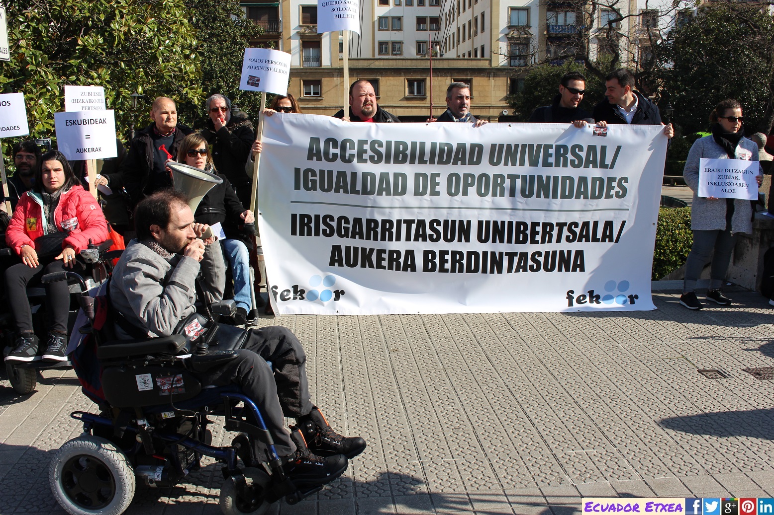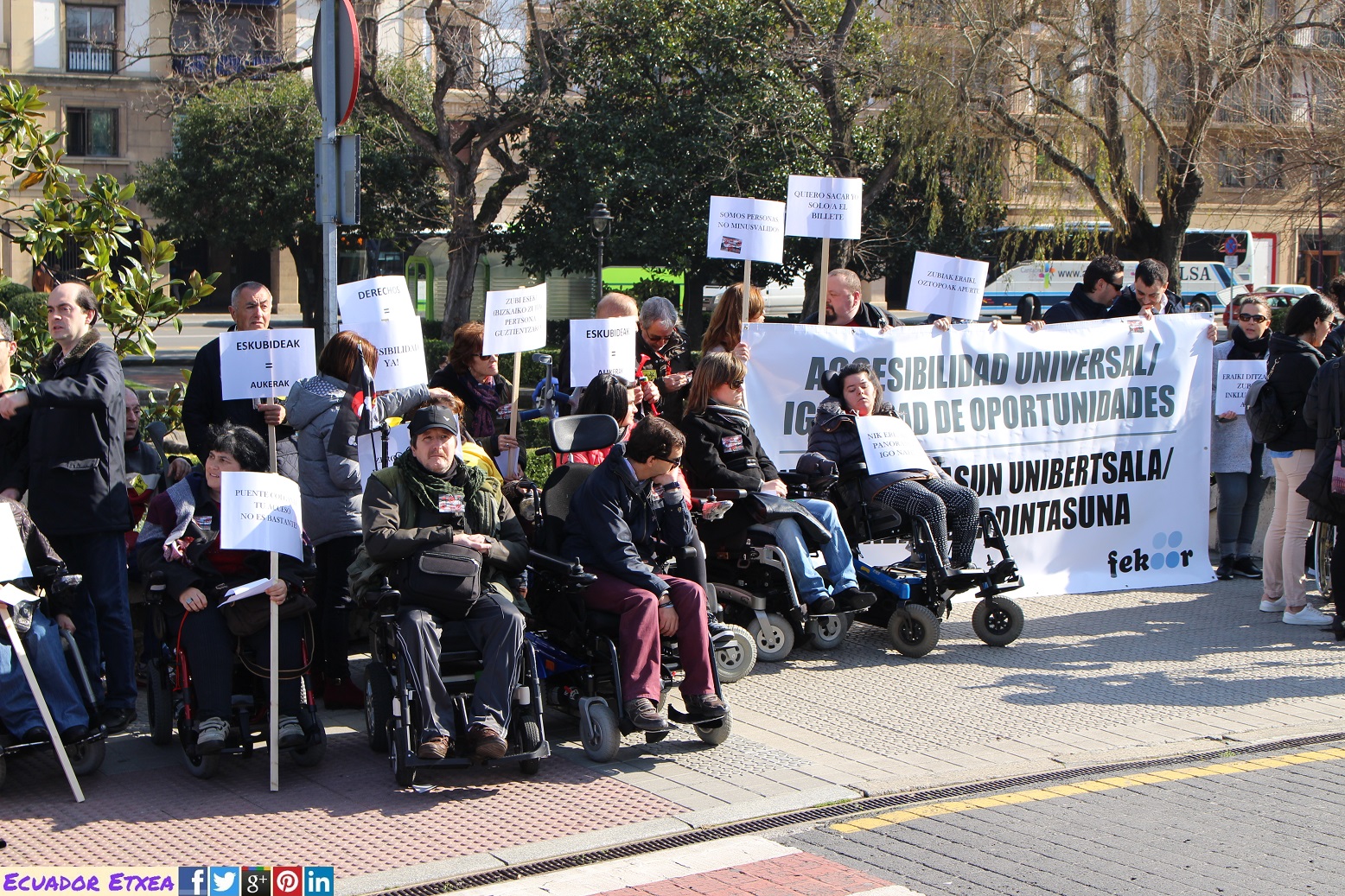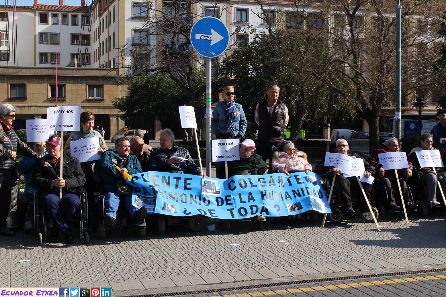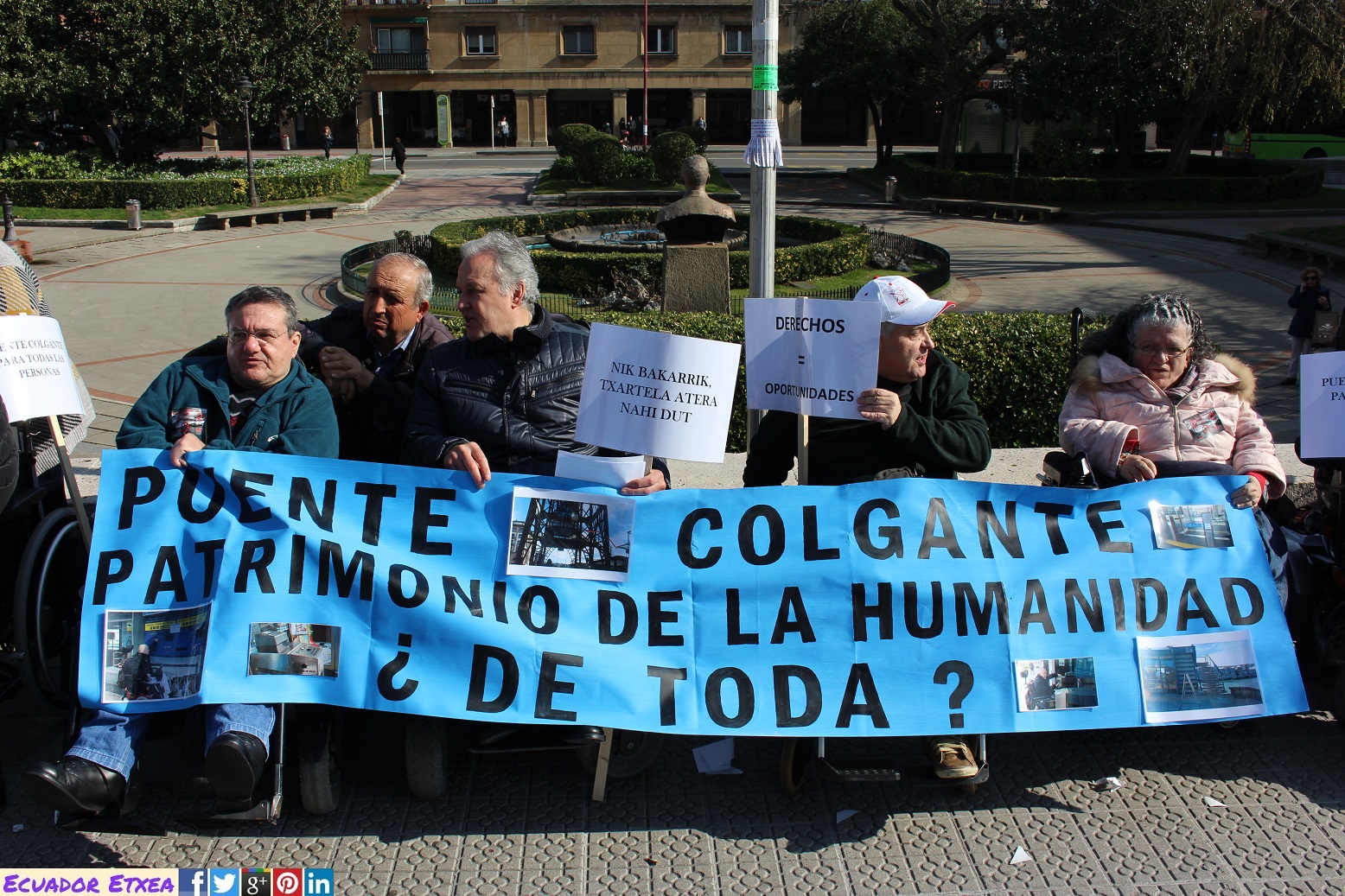 Bajo el lema «Puente Colgante-Patrimonio de la humanidad ¿de toda?», FEKOOR ha realizado una concentración en el Puente Colgante, en el embarque de Las Arenas-Getxo, este miércoles 22 de febrero, para exigir que se garantice la accesibilidad universal y el uso y disfrute para todas las personas, de este medio de transporte público, declarado Patrimonio de la Humanidad, desde 2007.
