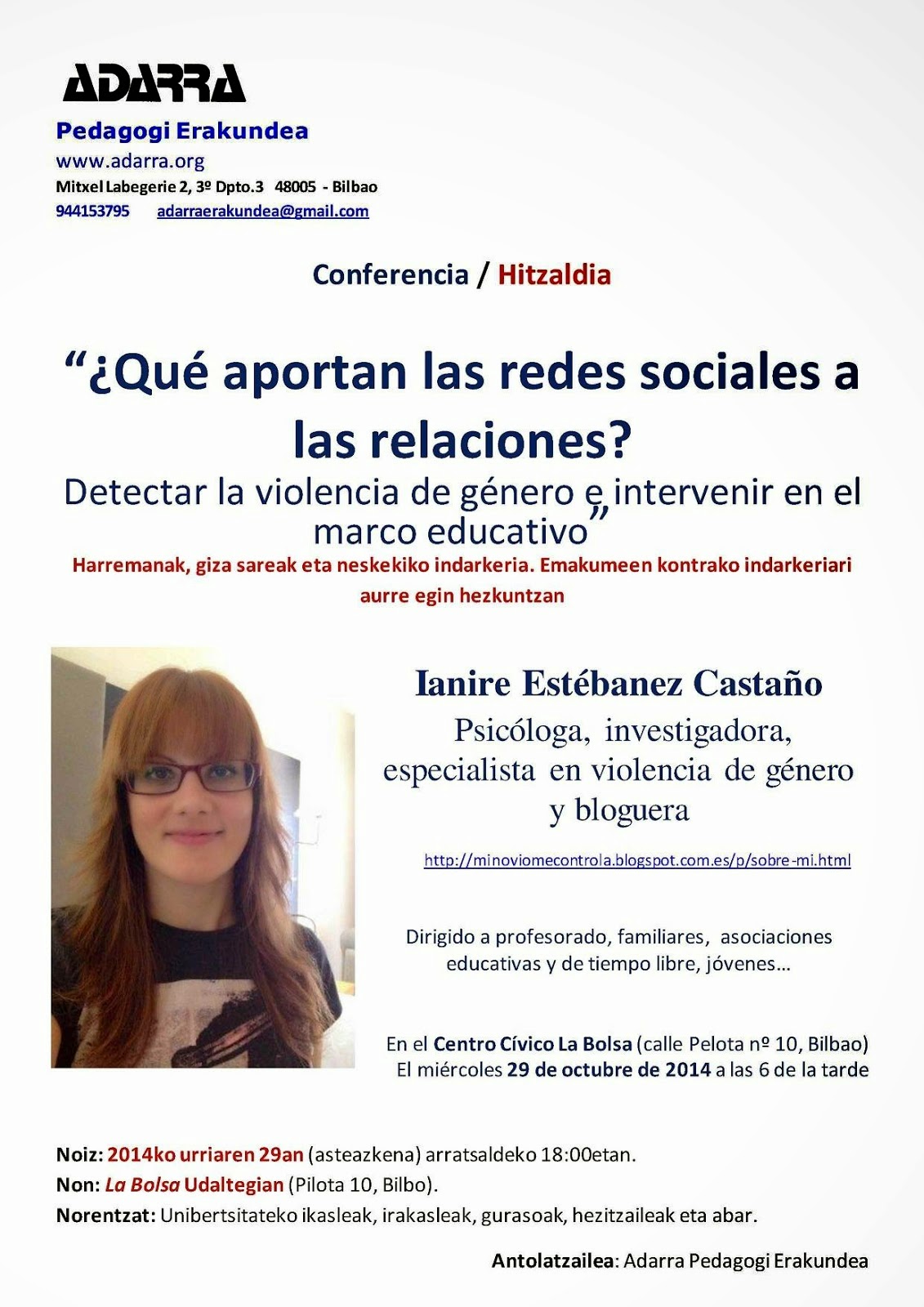 Imparte: Ianire Estébanez Castaño, Psicóloga, investigadora, especialista en violencia de género y bloguera. http://minoviomecontrola.blogspot.com.es/
