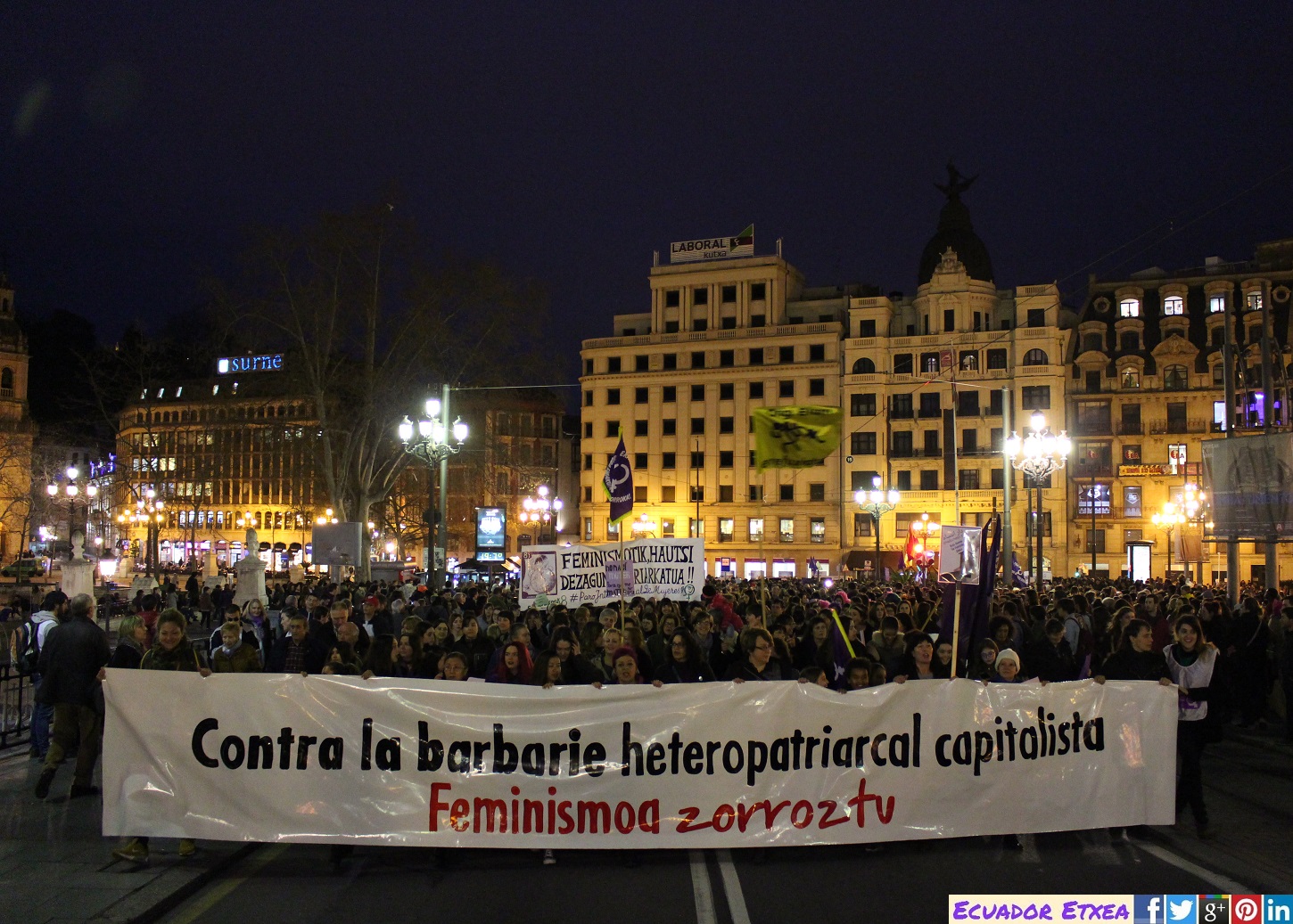 Un año más la coordinadora de Euskal Herria hace un llamamiento conjunto a las movilizaciones del 8 de marzo bajo el lema Contra la barbarie heteropatriarcal capitalista, FEMINISMOA ZORROZTU!. Este año además, nos adherimos al paro internacional de mujeres #M8 #MujeresEnHuelga, mediante acciones que se realizarán en las distintas capitales.