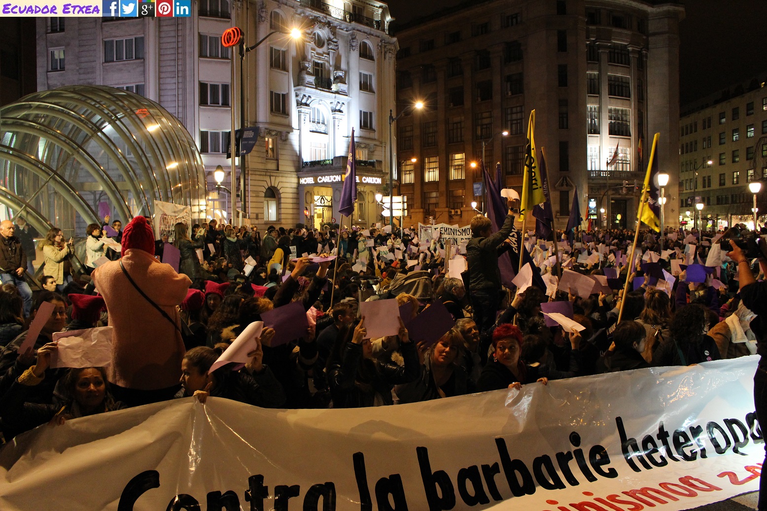 En este contexto devastador la violencia patriarcal se agudiza y nuestras vidas, las de las mujeres, son agredidas sistemáticamente. Somos nosotras el único colchón que garantiza un mínimo cuidado de las personas ante la involución de las prestaciones sociales a base de la doble jornada que consume nuestro tiempo. El feminicidio campa a sus anchas. Mujeres refugiadas son violadas y asesinadas, pagando con su cuerpo el precio de la migración.