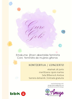 La tarde de este martes 26 de junio, la sala del Bilborock se ha llenado con el concierto GURE GOLÉ Kontzertua, un proyecto en el que están trabajando desde AMUGE para la creación de un coro feminista de mujeres gitanas (Emakume ijitoen abestalde feminista kontzertua).