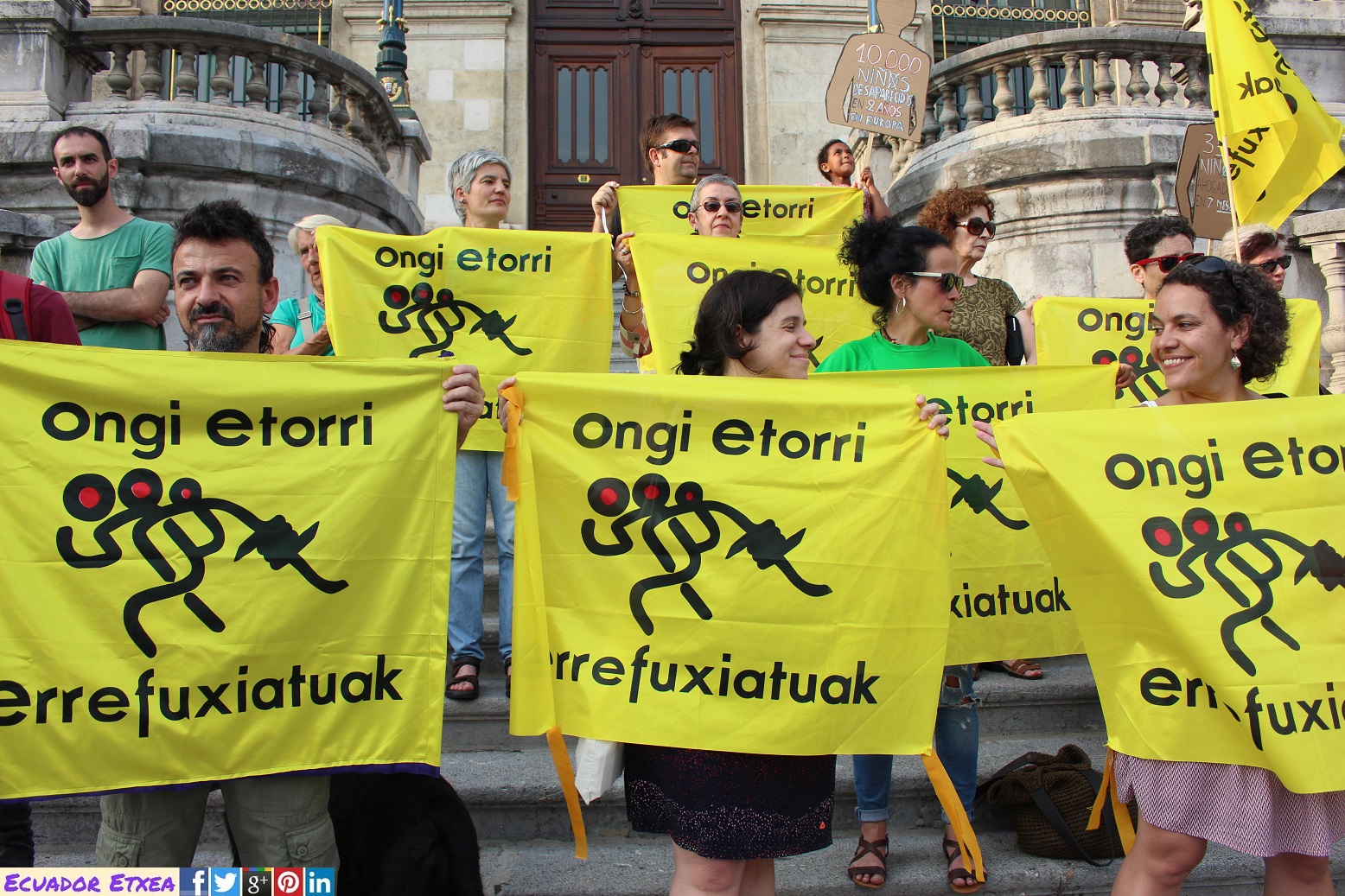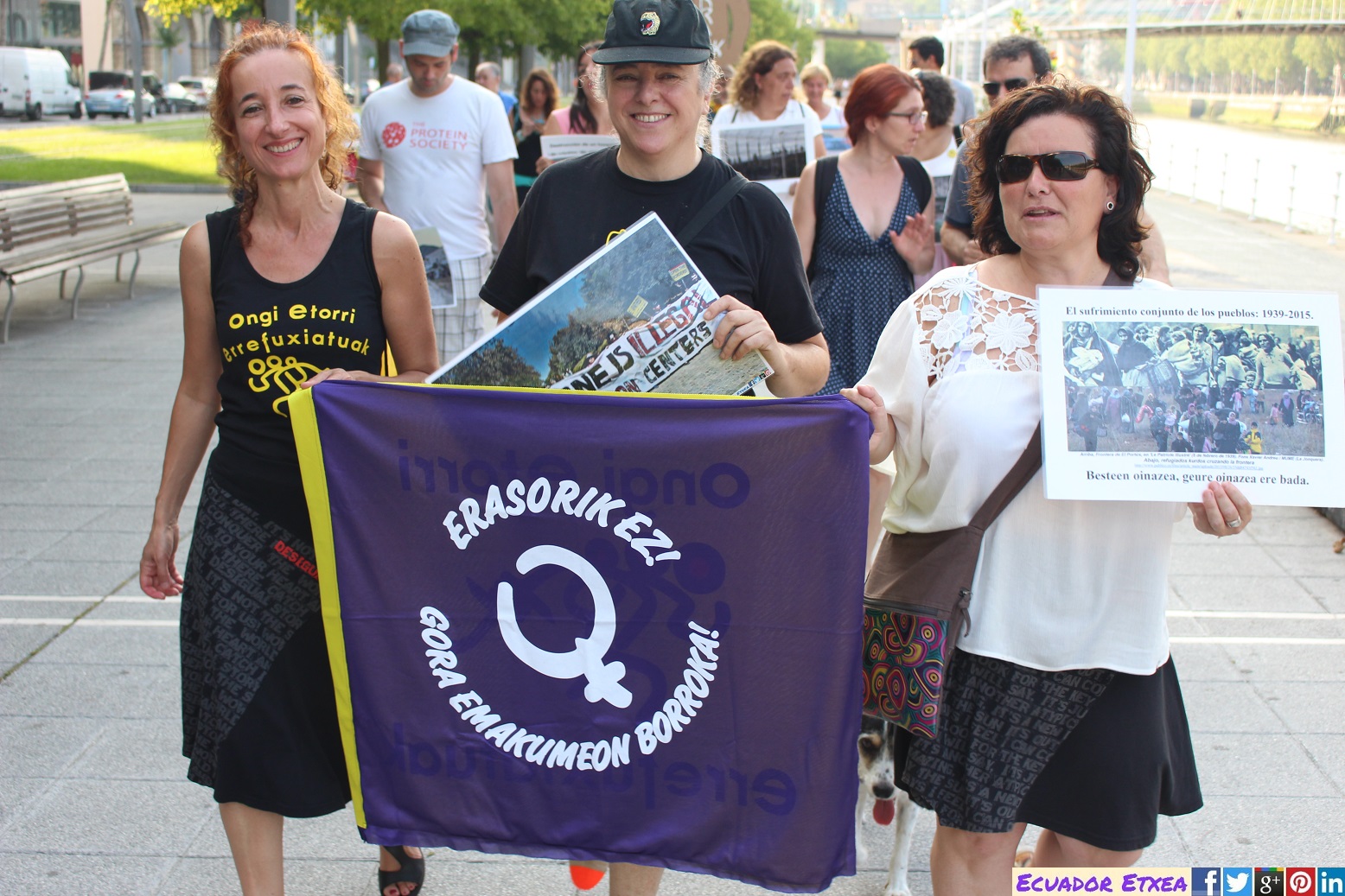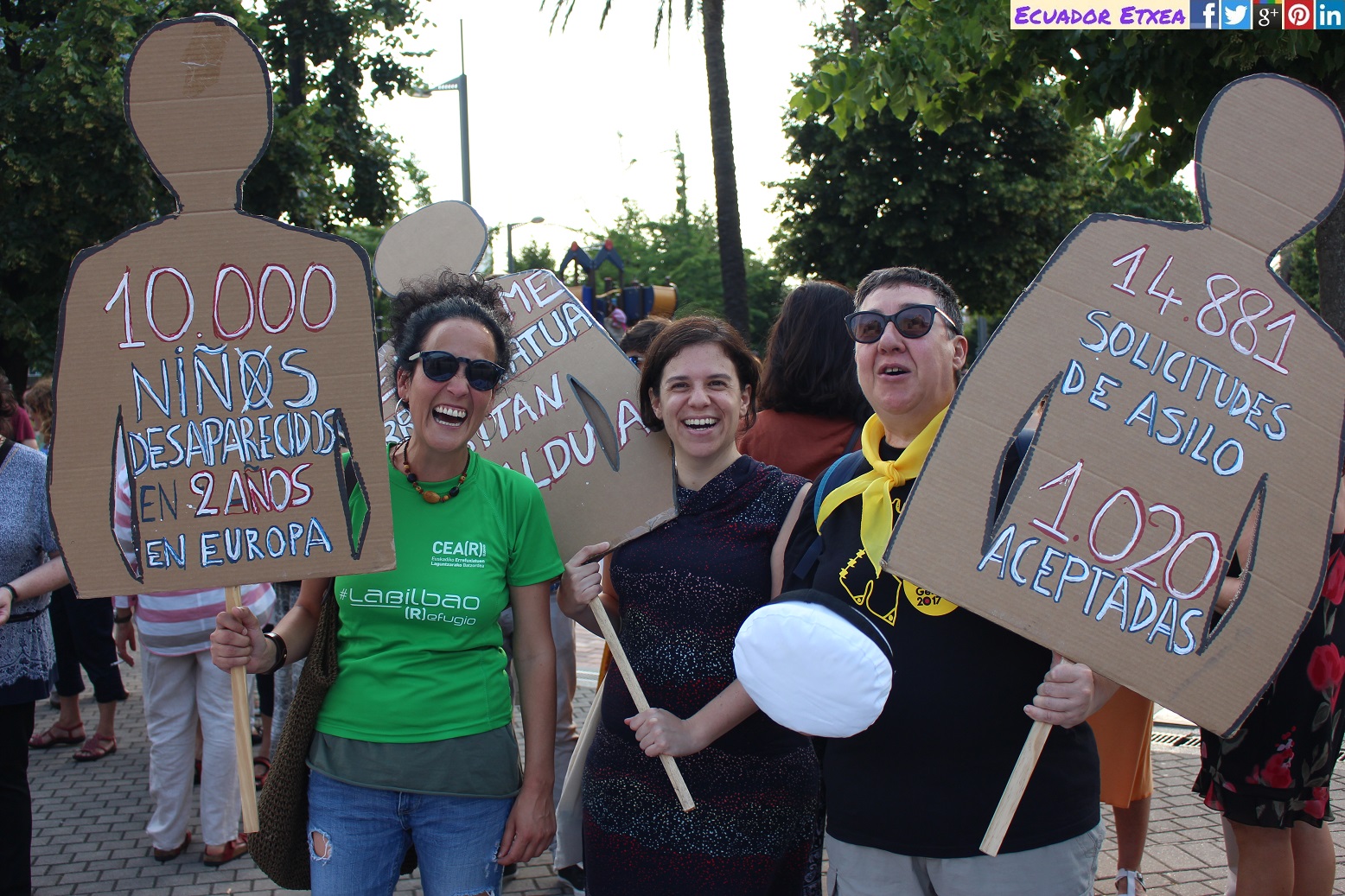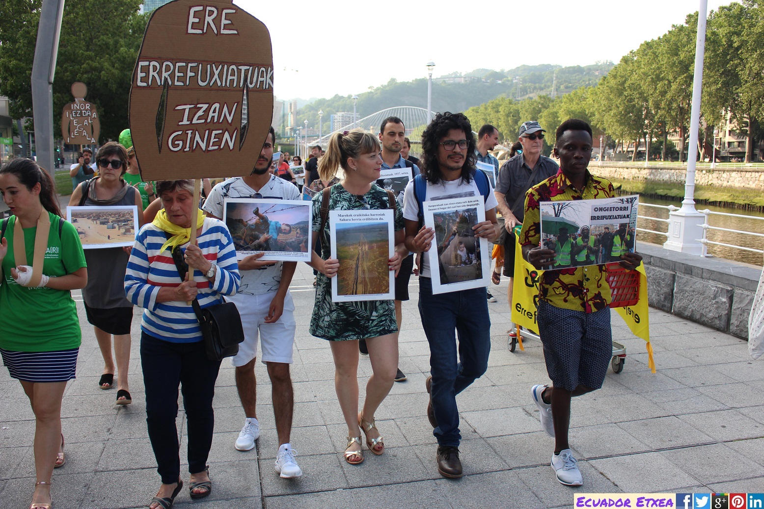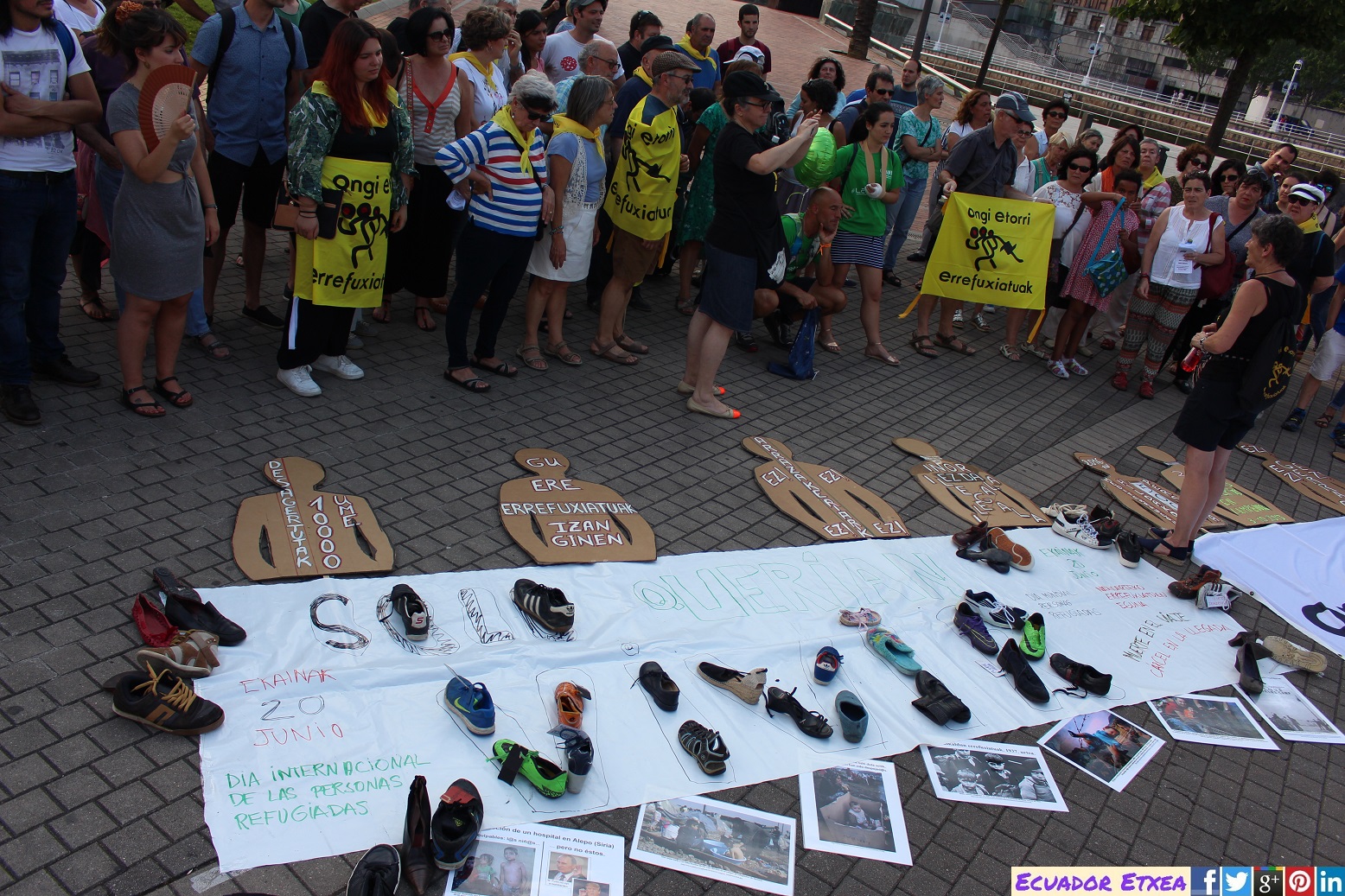Este martes 20 de junio, con motivo del Día Internacional de las Personas Refugiadas, la Plataforma Ongi Etorri Errefuxiartuak-Bizkaia y CEAR-Euskadi, se han movilizado en Bilbao para denunciar la vulneración de los derechos humanos de las personas migrantes y refugiadas. Hay que poner fin a la tragedia de 65 millones de personas desplazadas de sus lugares de residencia, a la desesperanza de las miles de personas que tratan de llegar a Europa y a las que se les cierran las fronteras y el derecho a una vida digna, incluso a la vida misma al ser empujadas a morir en las aguas del Mediterráneo en su búsqueda de caminos para llegar.