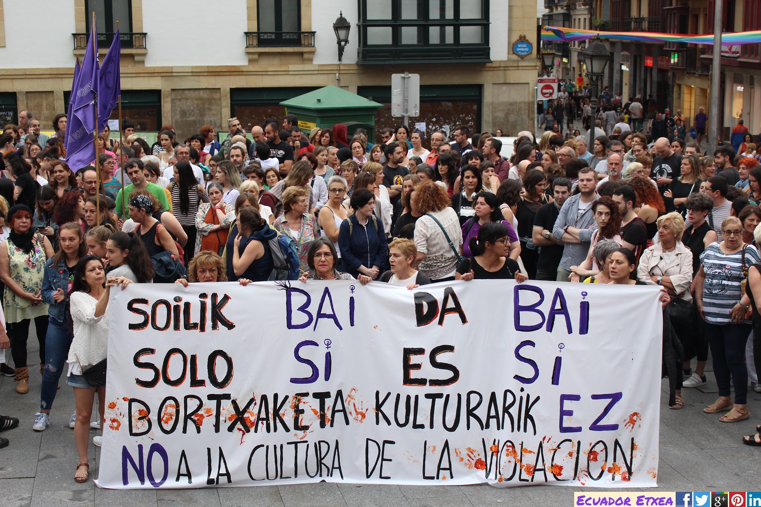 Indignación y mucha rabia tras conocerse la noticia de que la Audiencia Provincial de Navarra ha decretado la libertad provisional de los miembros de “La Manada”, bajo fianza de 6.000 euros. Inmediatamente, colectivos feminista de Euskal Herria y el estado español se han organizado para convocar movilizaciones para esta misma tarde frente a sedes judiciales, ayuntamientos y/o plazas, bajo el lema “Contra la Justicia Patriarcal”. Y para seguir haciendo visible su rechazo, se realizará una nueva concentración este viernes 22 de junio a las 19:00 delante de los Juzgados de Bilbao.