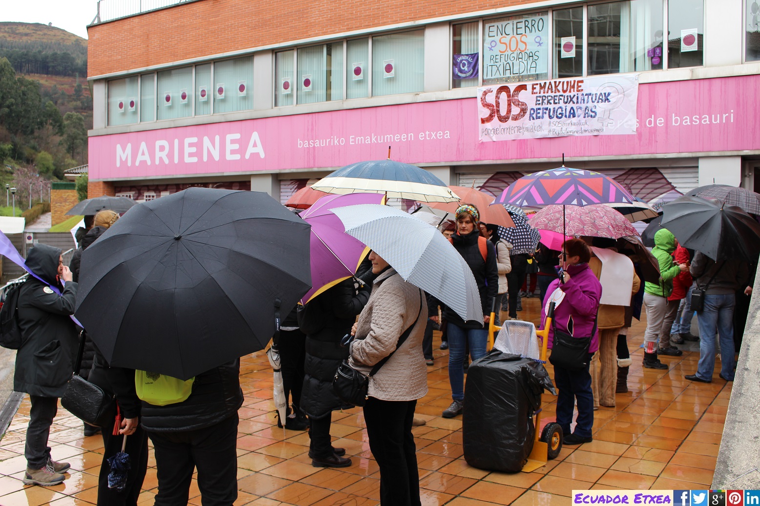 Hola a todas y todos, este año queremos dirigir la campaña del 8 de marzo a denunciar la situación de las personas refugiadas y en concreto, visibilizar a las mujeres por los peligros a los que se enfrentan por el hecho de ser precisamente mujeres y refugiadas. Como cada año, os invitamos a participar activamente en las actividades pero sobre todo, pedimos vuestro apoyo y colaboración en la VIGILIA FEMINISTA que celebraremos el 5 y 6 de marzo en Marienea. Organizaremos 24 horas de acciones para mostrar nuestra solidaridad con las personas refugiadas, entre ellas también: puntos de información en Basauri, venta de bonos, mesa redonda, vídeo-foros, una cadena humana…