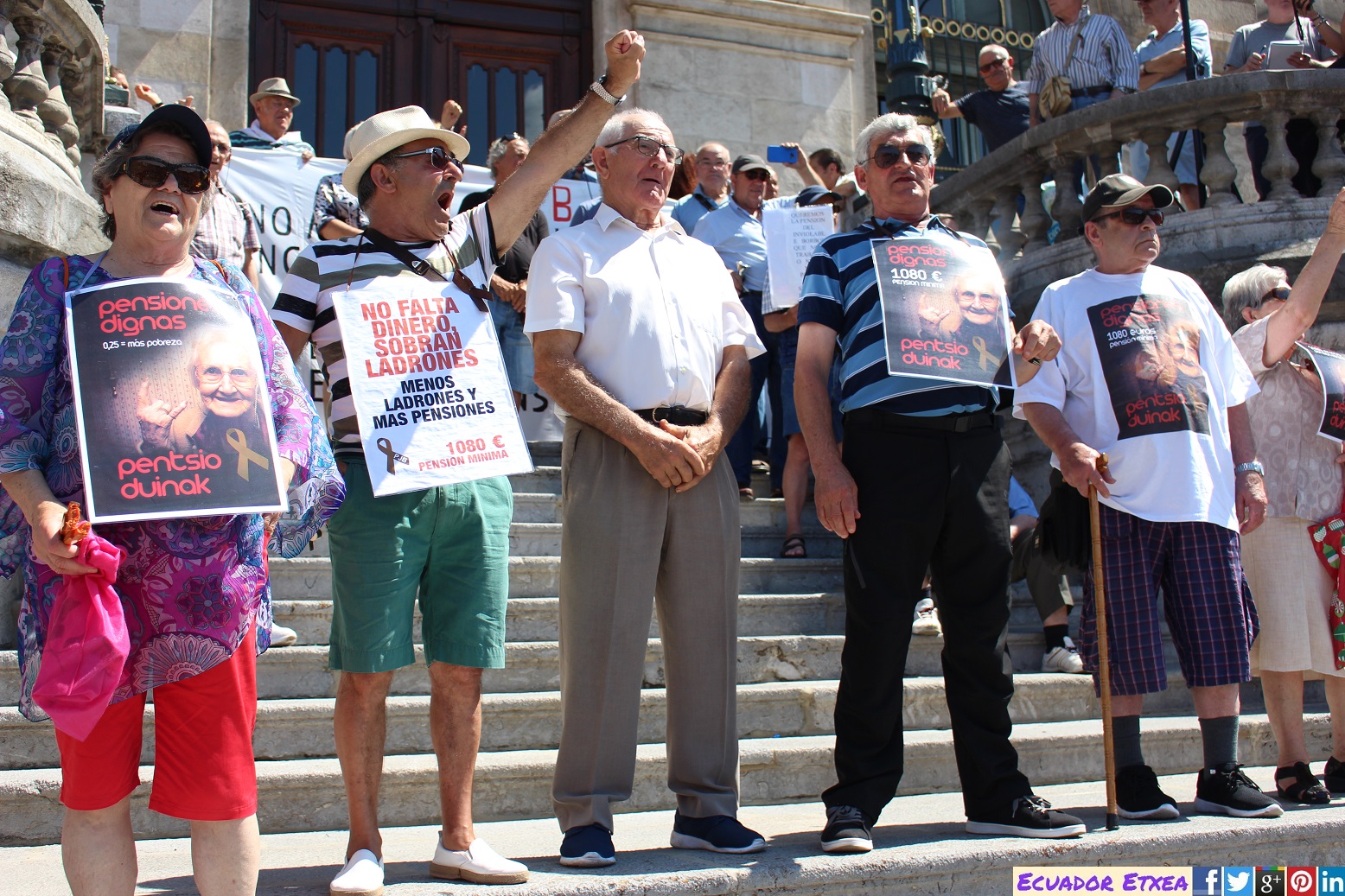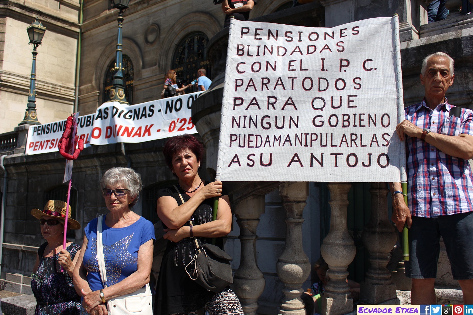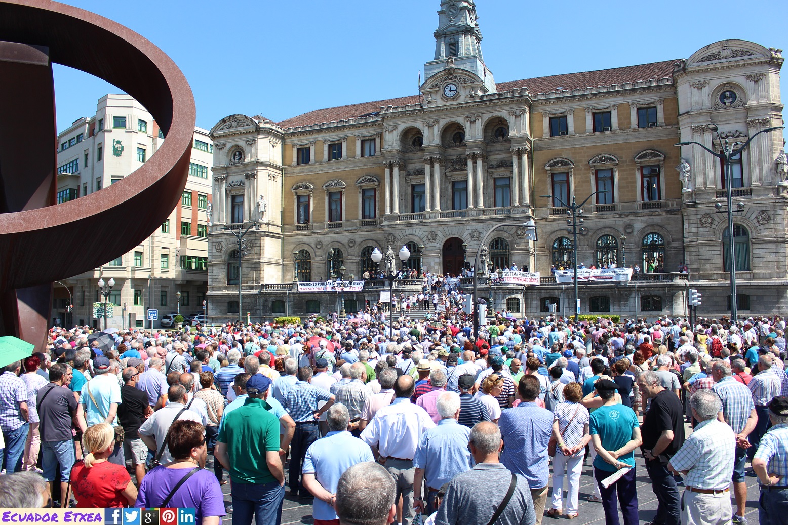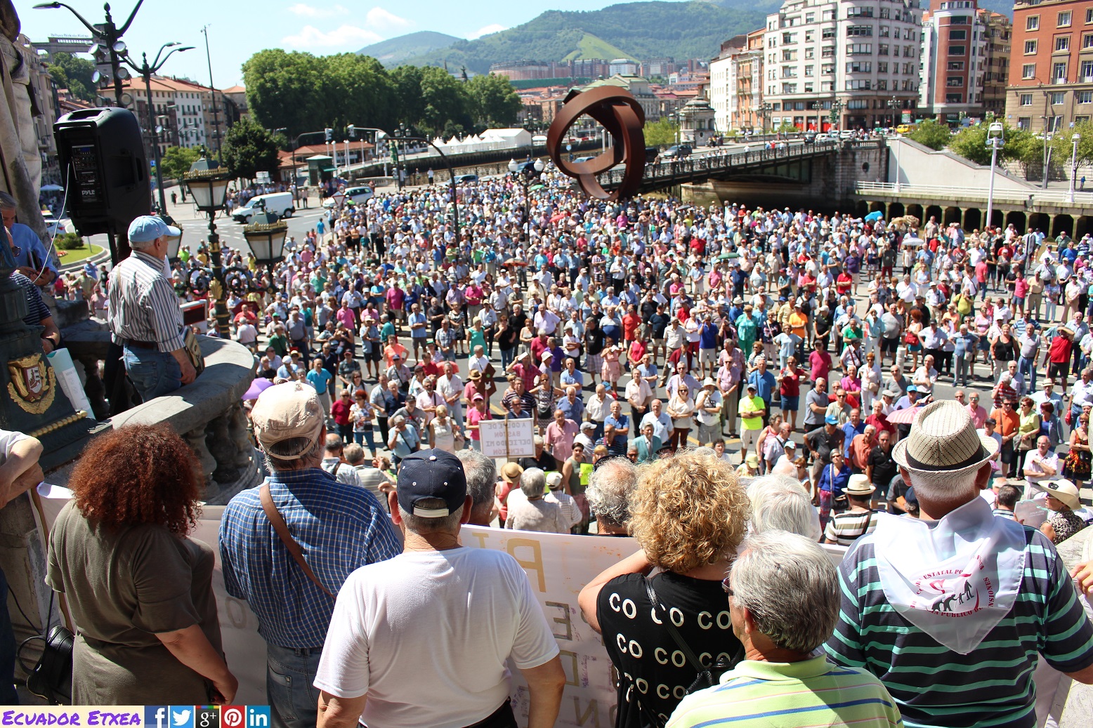 Entrados ya en temporada estival, las plataformas de personas jubiladas, pensionistas y viudas, han realizado su concentración habitual de los días lunes frente al Ayuntamiento de Bilbao, y al igual que durante la últimas movilizaciones, esta vez se han vuelto a escuchar gritos de «Gobierne quien gobierne, las pensiones se defienden», “Esta batalla, la vamos a ganar” y por su puesto “Pentsionistak Aurrera”. Y afirman que en la próxima convocatoria de concentración del lunes 9 de julio, decidirán entre todas, según las fuerzas y asistencia, si dar continuidad o no a las movilizaciones durante el verano.