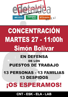 Por segunda semana consecutiva tras iniciar una huelga indefinida, trabajadoras y trabajadores de ST3 Elkartea se han concentrado este martes 27 de febrero frente a la sede de la Fundación EDE (C/Simón Bolívar, 8-Bilbao) con el apoyo de los sindicatos ESK, CNT, ELA y LAB, para denunciar que llevan años viviendo un auténtico calvario por culpa de la dirección de EDE Taldea que ya desde el año 2014 quería liquidarlos.