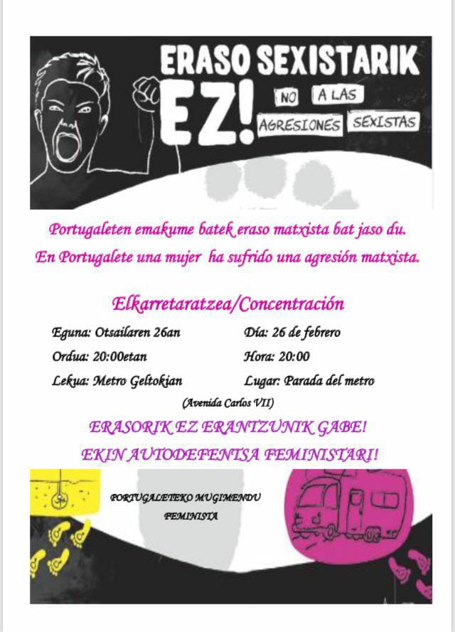 Comunicado: Berriro ere, hemen batu behar izan dugu eraso matxista bat gertatu delako Portugaleten, gure herrian.