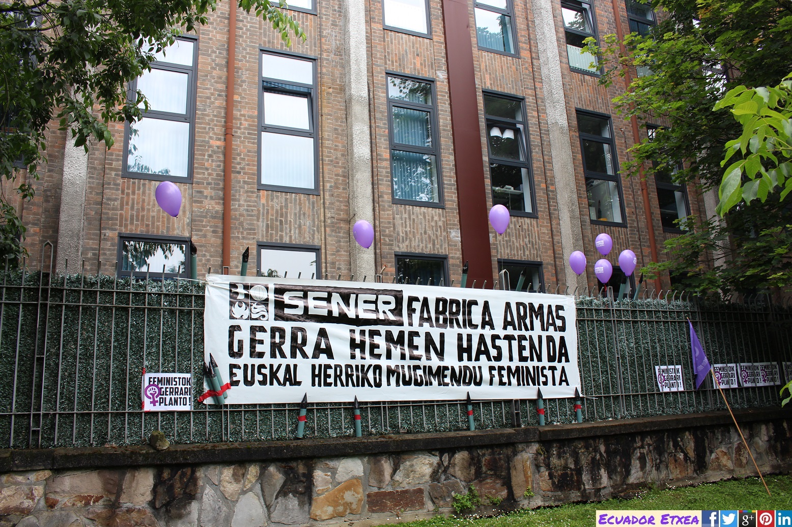 – La presencia de la industria armamentística en nuestro territorio en el que empresas como SENER, ITP y SAPA, colaboran con su tecnología en la fabricación de armamento causante de la muerte de centenares de miles de personas. ¡La guerra empieza aquí!