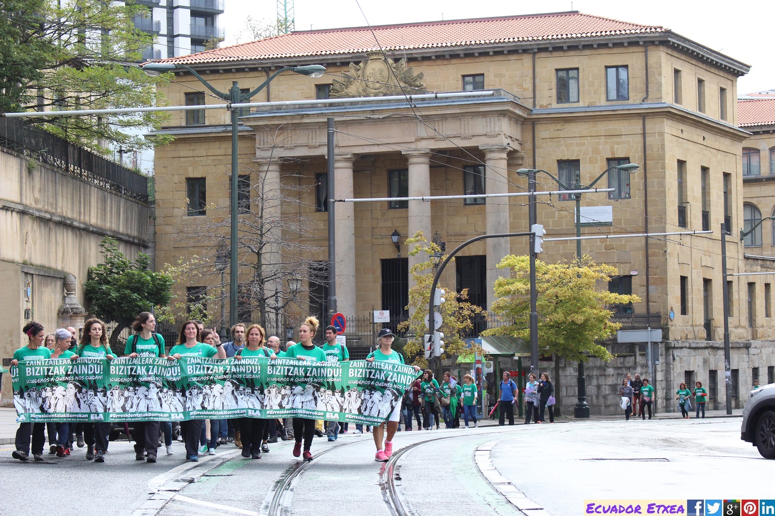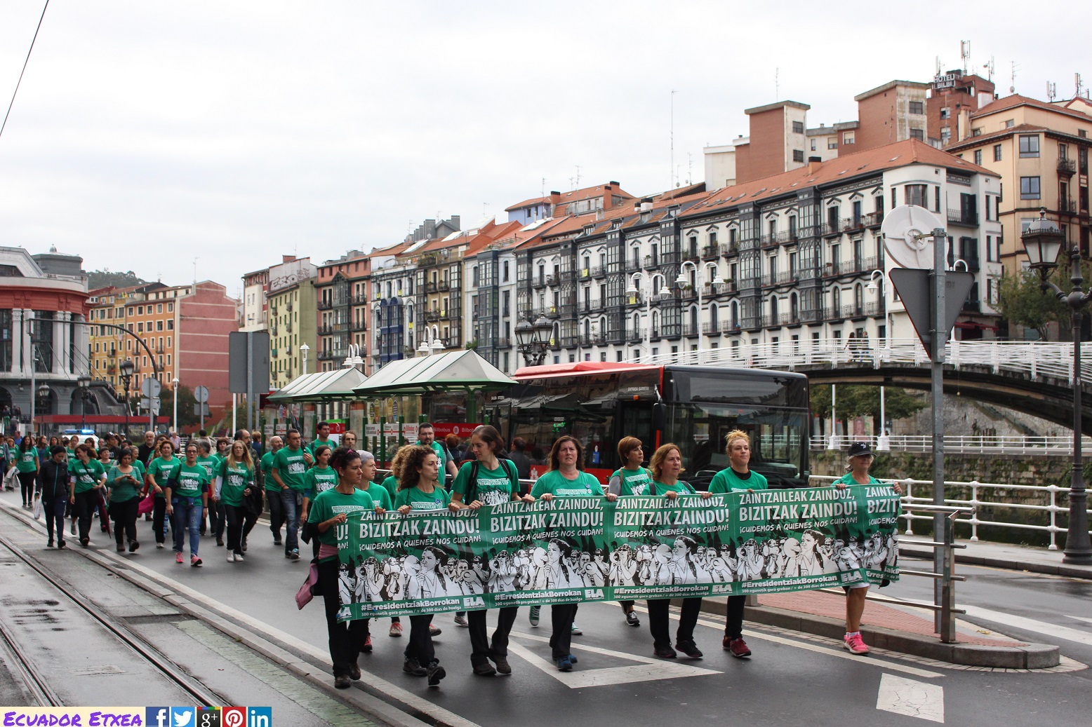 Las trabajadoras de residencias de Bizkaia en huelga iniciaron el pasado martes una marcha a pie por toda Bizkaia que ha finalizado hoy sábado en la Diputación de Bizkaia. A la marcha se han unido cientos de personas que han trasladado su solidaridad a las huelguistas, que suman más de 350 días en paro.