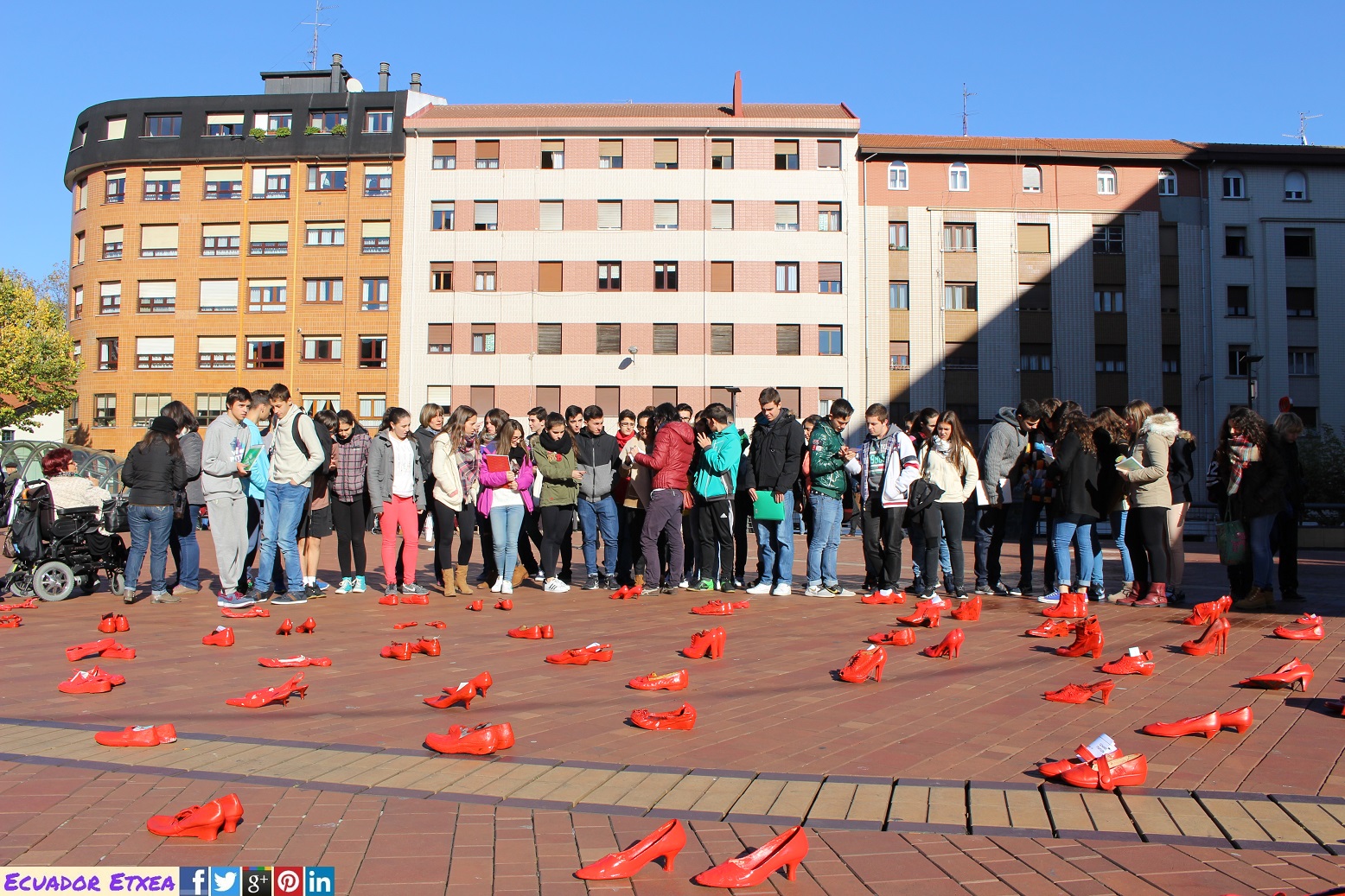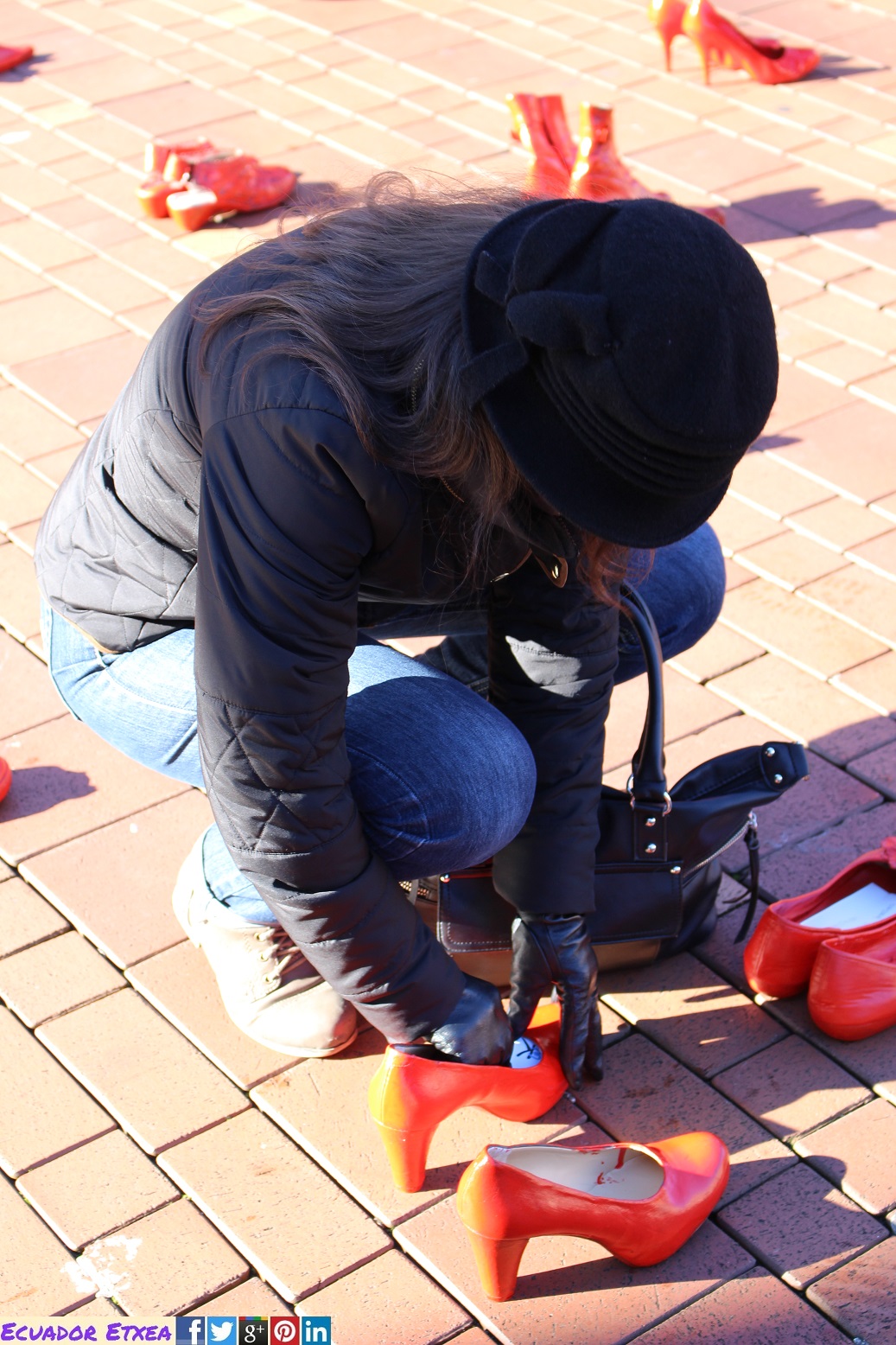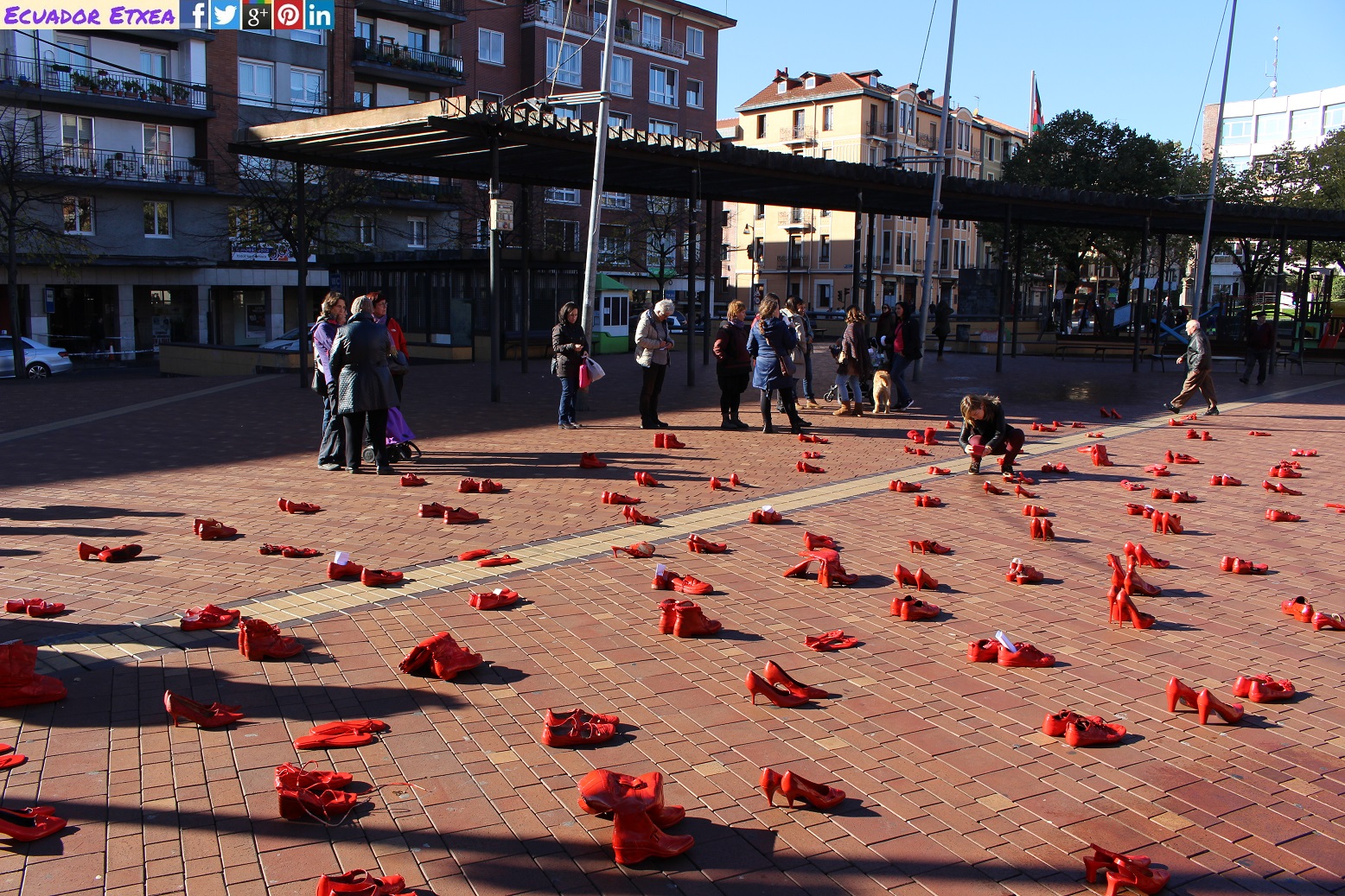 Instalación (réplica) de arte público “Zapatos Rojos” con Elina Chauvet (Sestao)
