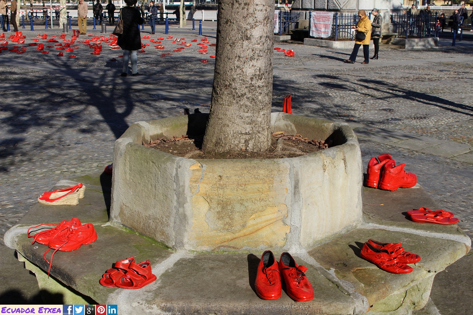 ZAPATOS ROJOS, cuya creadora es Elina Chauvet, es una instalación de arte público, una reflexión contemporánea que conceptualiza la violencia hacia las mujeres, sensibiliza desde el punto de vista objetual que representa el zapato como prenda testimonial de una desaparición.