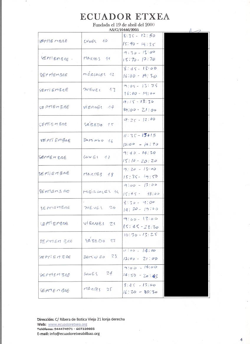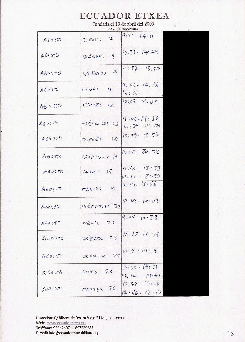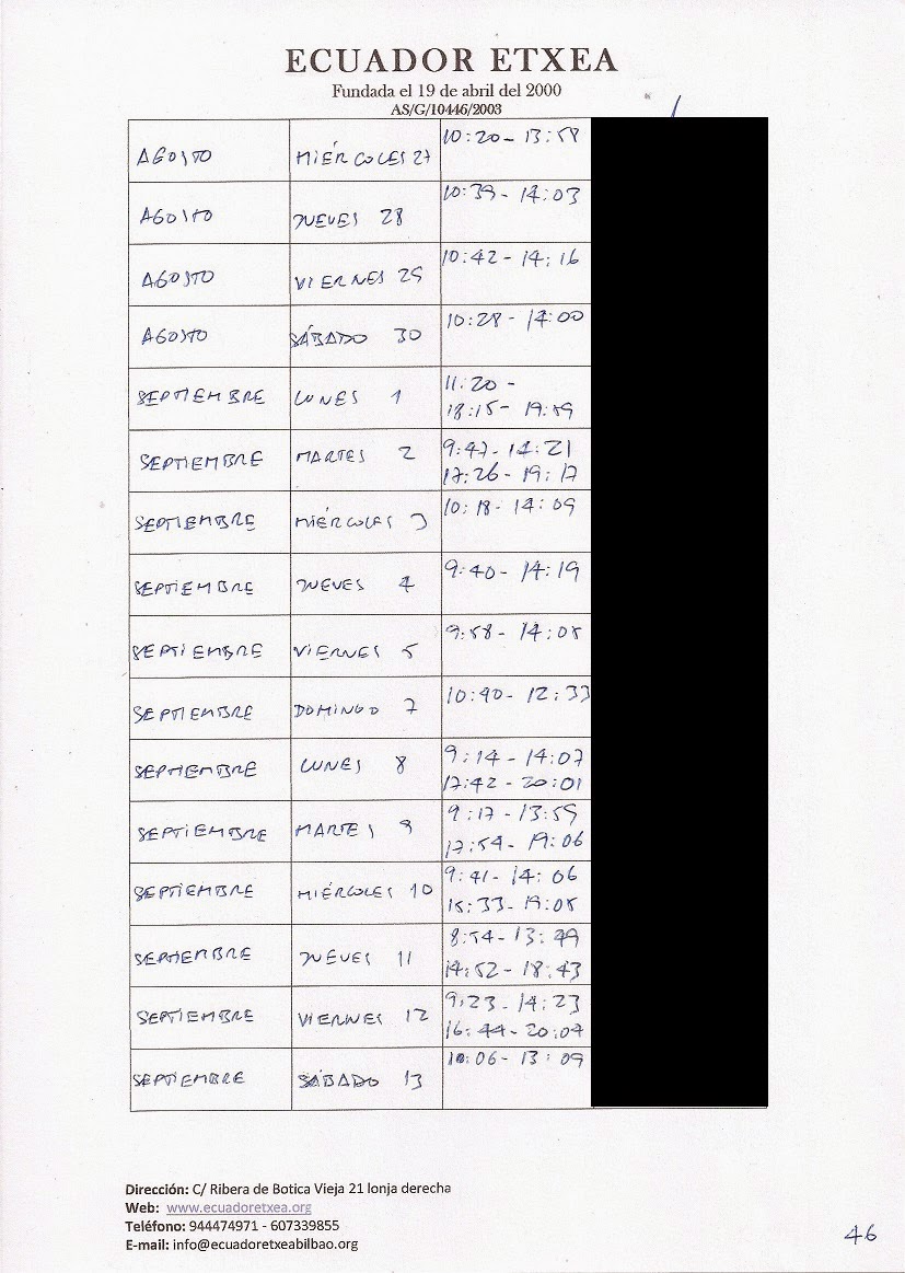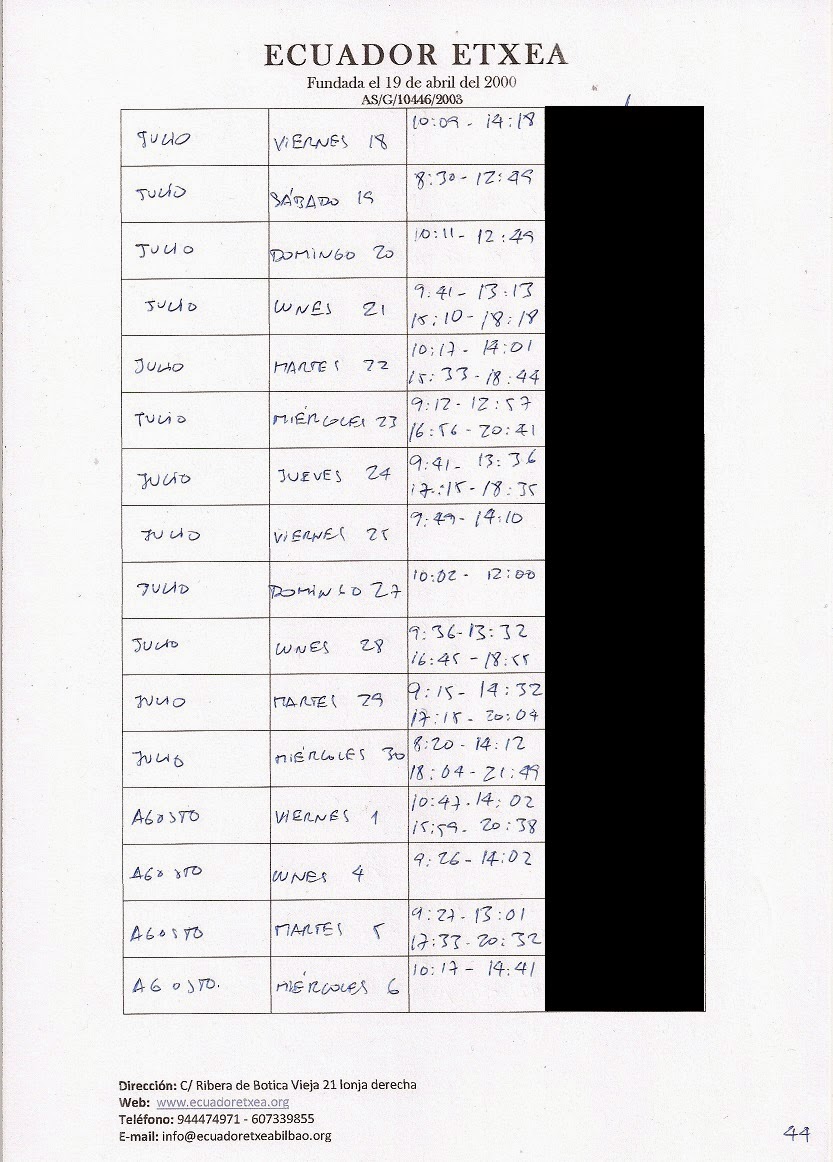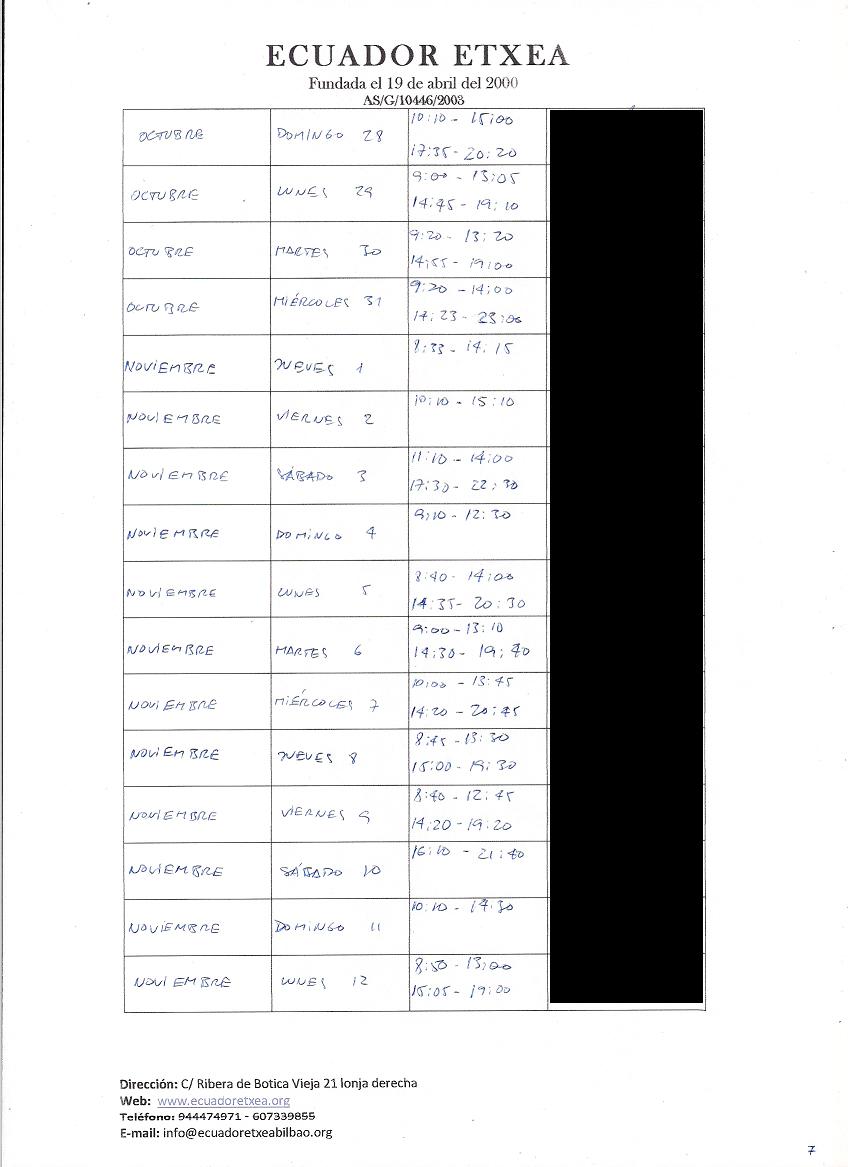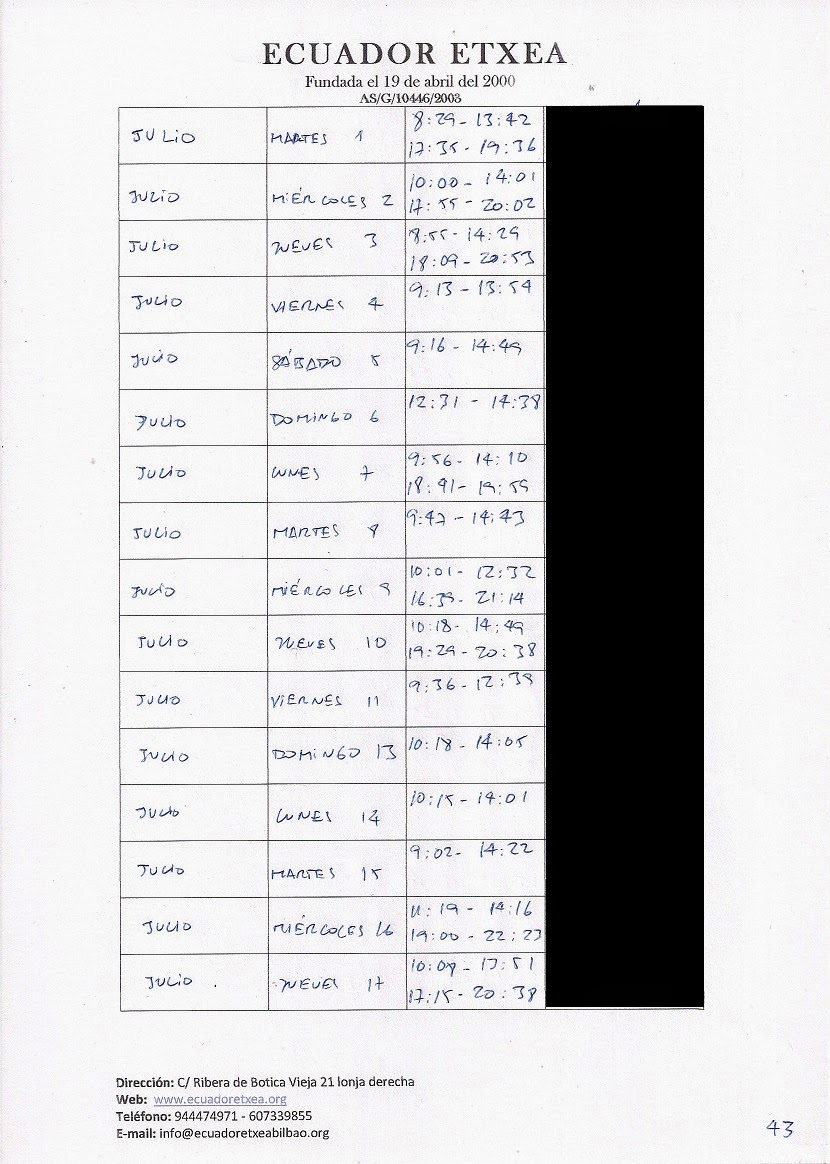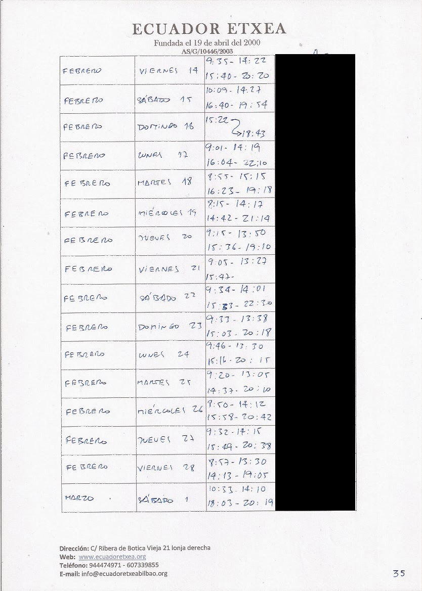 | Registro de los días trabajados (hora de entrada y salida). |