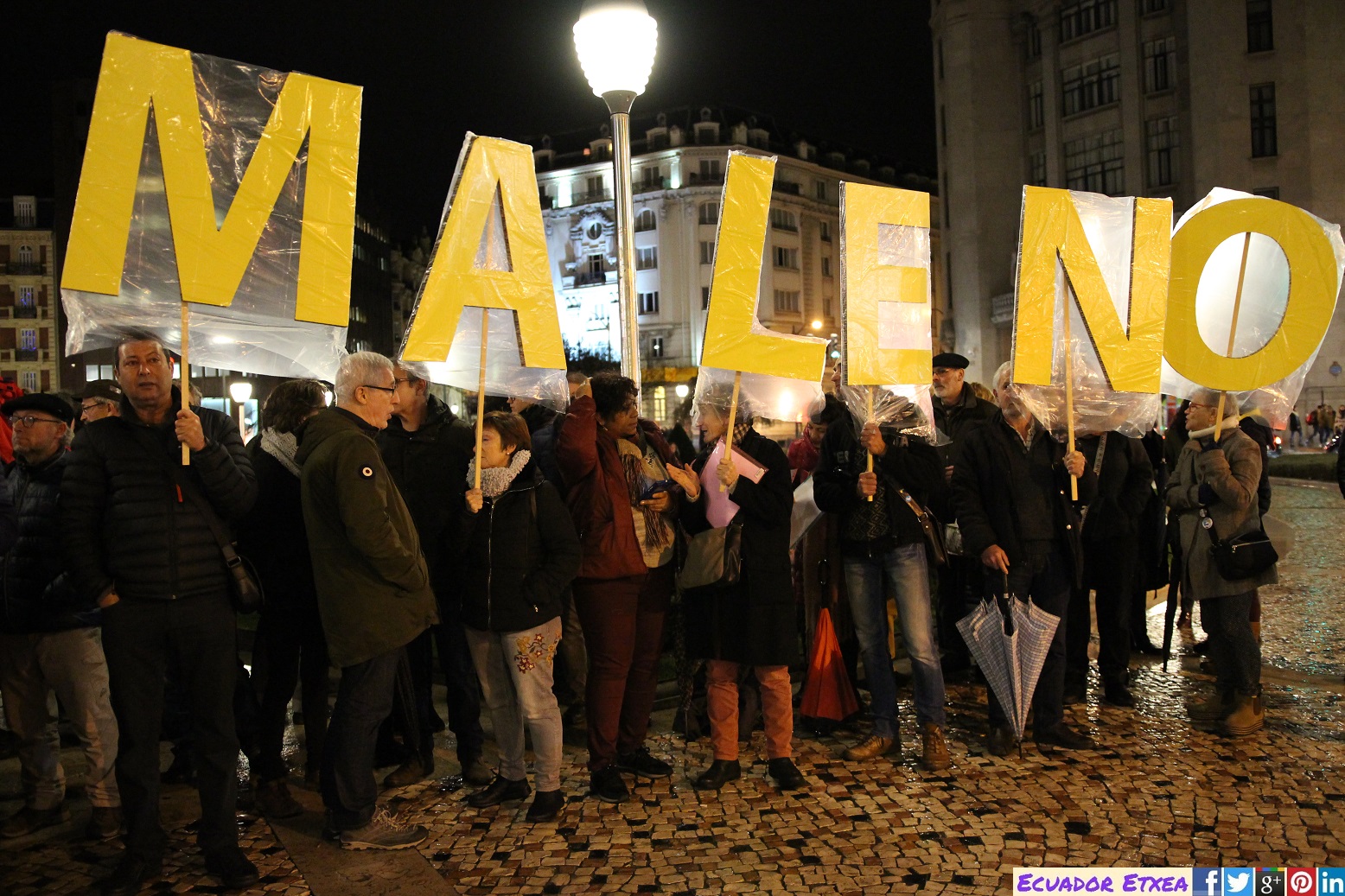 La plataforma Ongi Etorri Errefuxiatuak ha realizado una concentración este miércoles 10 de enero en Bilbao, en solidaridad con la activista del colectivo Caminando Fronteras, periodista y defensora de derechos humanos en la frontera sur, Helena Maleno, quien ha comparecido ante el tribunal de Apelación de Tánger (Marruecos) acusada de tráfico de personas y de impulsar la migración ilegal. #DefendiendoAMaleno