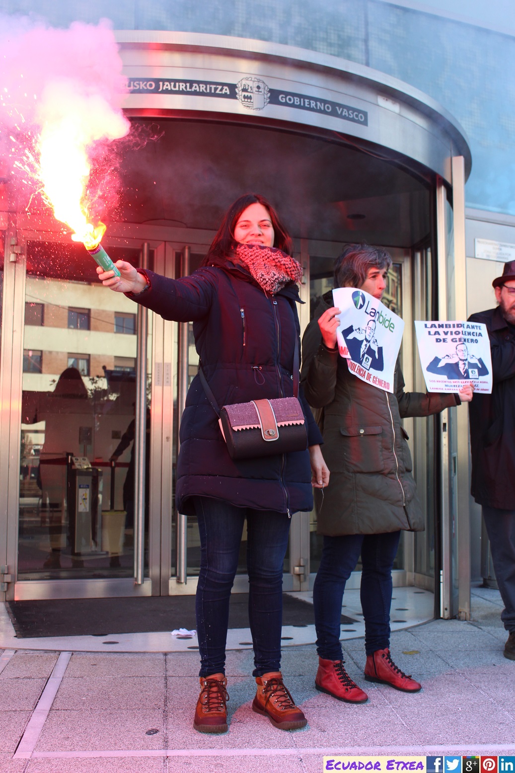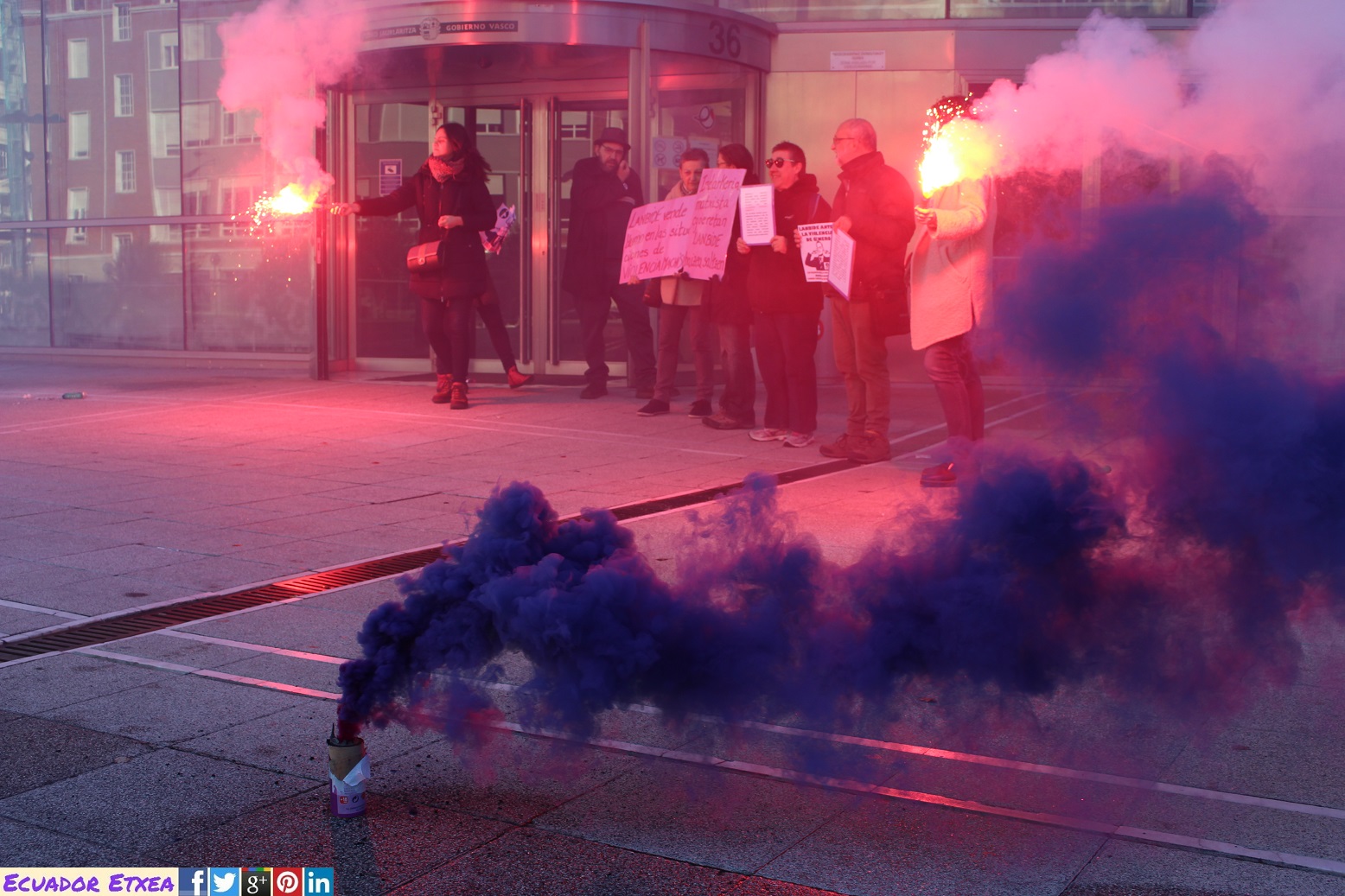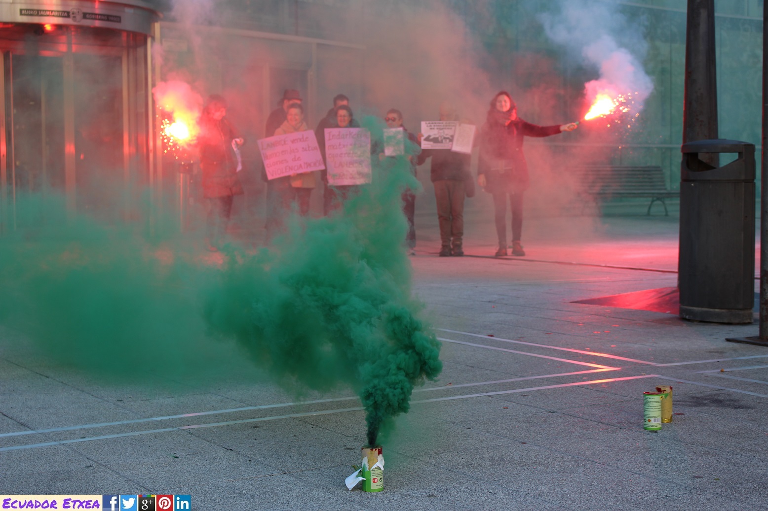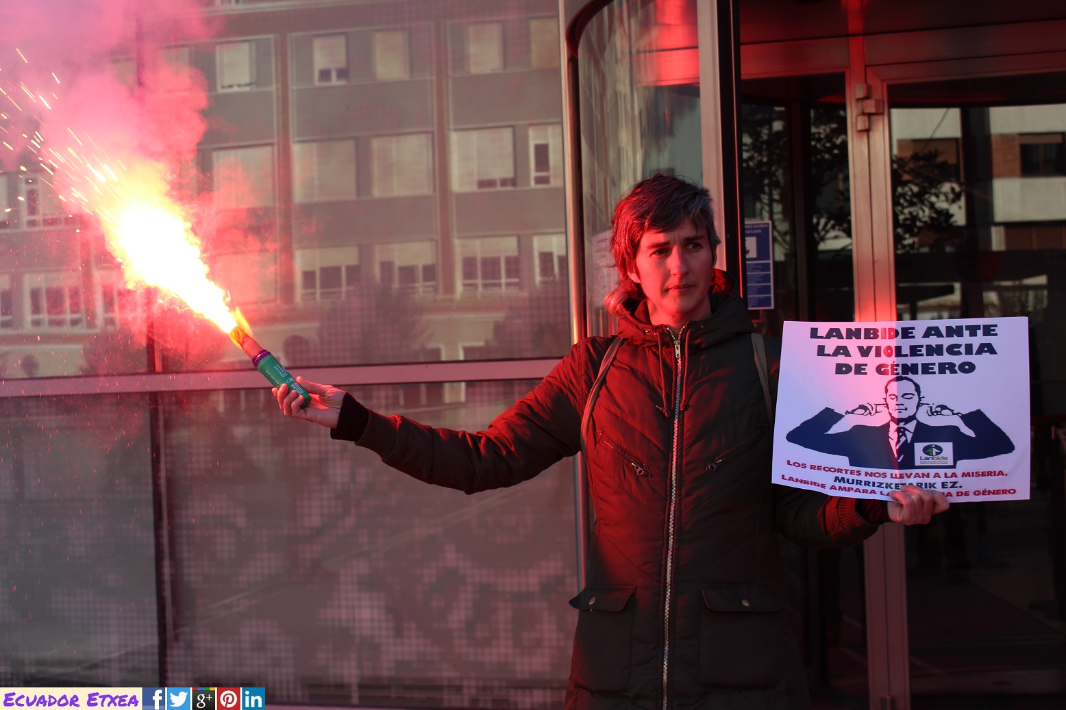 Iniciativa realizada este jueves 24 de noviembre a las 10:15, ante las oficinas centrales de Lanbide en Bilbao (Bizkaia). Con el ánimo de evidenciar que “Lanbide vende humo en las situaciones de violencia machista”. Con el ánimo de denunciar la vulneración de derechos que vienen sufriendo las víctimas de violencia machista: malos tratos, agresiones, discriminación laboral, precariedad y pobreza. Las políticas de recortes aplicadas desde Lanbide sólo han conllevado desprotección; abandono; y constante ataque a la intimidad, privacidad y derechos de las mujeres.