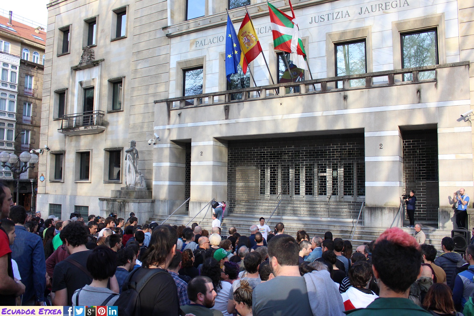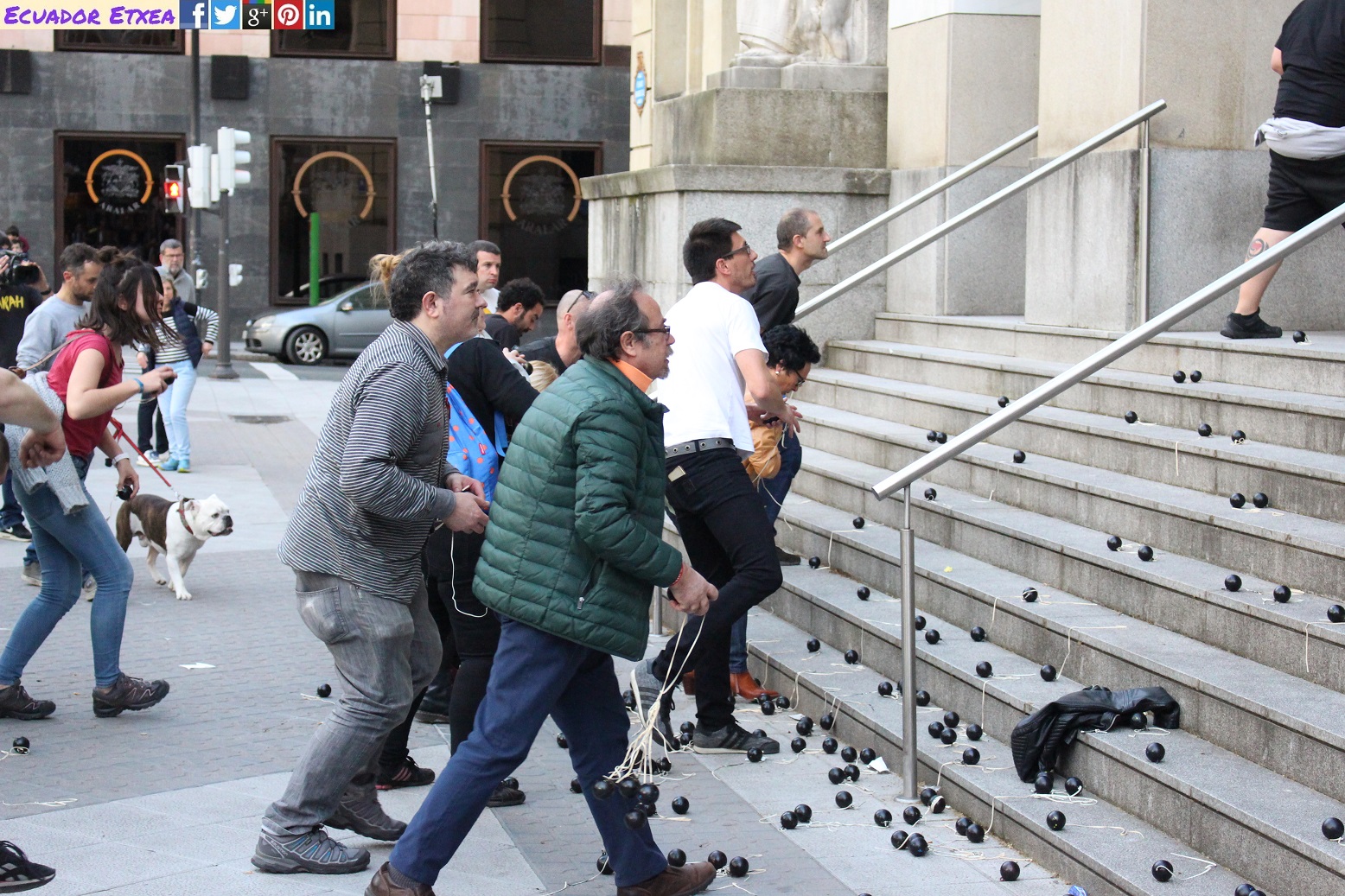 Centenares de personas han participado la tarde de este viernes 6 de abril en una acción simbólica organizado por la Plataforma Iñigo Gogoan que ha consistido en una ofrenda de balas (pelotas) de goma, lanzándolas contra la entrada del Palacio de Justicia de Bilbao mientras se escuchaba de fondo la grabación de las comunicaciones internas de los agentes que participaron en el operativo que acabó con la vida de Iñigo Cabacas, para exigir justicia y en contra de la impunidad cuando se cumplen 6 años de la muerte de Iñigo a causa del impacto de una pelota de goma lanzada por la Ertzaintza.