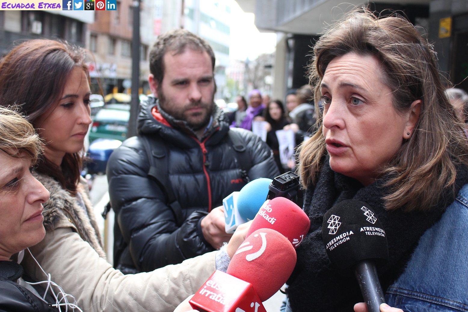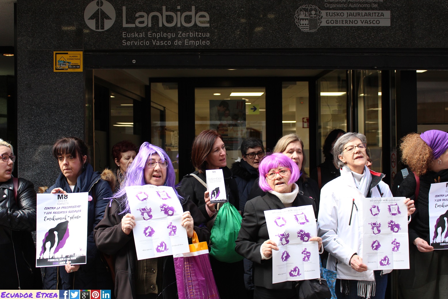 Cerca de unas 50 personas, entre feministas e integrantes de colectivos sociales de Argilan-ESK, Argitan (Centro Asesor de la Mujer, Barakaldo), Asociación de Trabajadoras del Hogar de Bizkaia, Baietz Basauri!, Berri-Otxoak (Barakaldo), Brujas y Diversas, Danok Lan (Galdakao), Elkartzen, Mujeres del Mundo, Posada de los Abrazos, RGI Santurtzi, SOS Racismo y PAH Bizkaia-Kaleratzerik EZ, han participado la mañana de este martes 6 de marzo ante las oficinas de Lanbide en Mazarredo (Bilbao) en una acción enmarcada dentro de la próxima huelga feminista del 8 de marzo “Nosotras Paramos/Emakumeok Planto”, para denunciar que la precariedad, la pobreza, los recortes en Sanidad, Servicios sociales, Educación y dependencia se hacen a costa del trabajo, el tiempo y la salud de las mujeres.