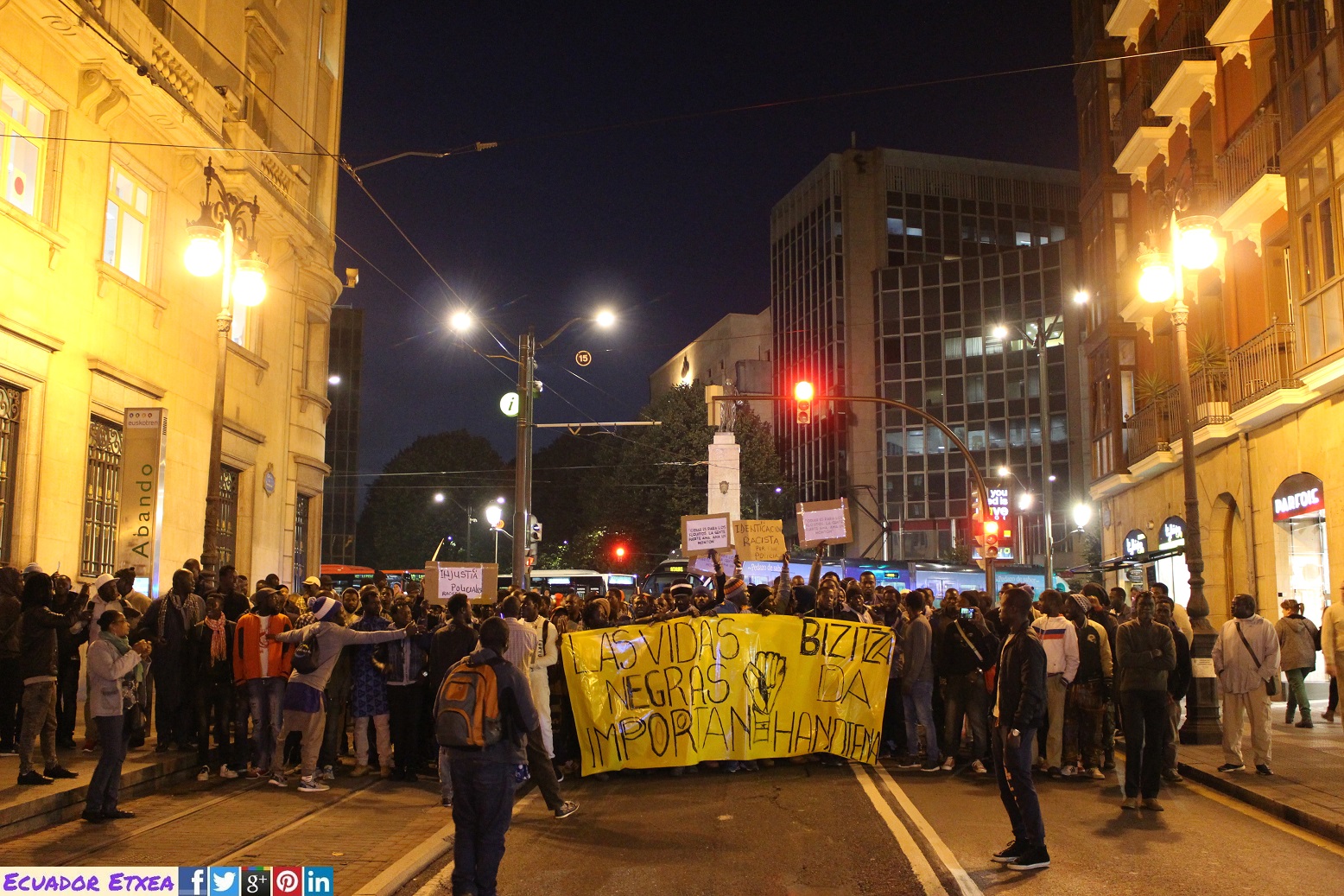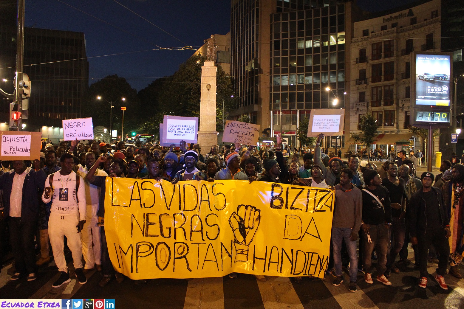 Convocados por la Comunidad senegalesa, el Dahira Subulu Salam Wa Touba y el Movimiento Panafricano de Bilbao se ha realizado una manifestación este miércoles 2 de noviembre a las 18:00hrs. para denunciar y pedir esclarecimiento sobre la muerte del vecino natural de Senegal, Elhadji Ndiaye, muerto en mano de la policía española en una comisaría de Pamplona.