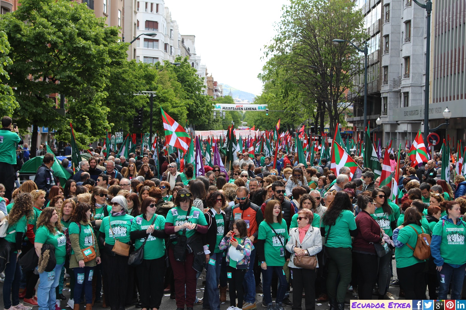 Después del acto realizado en la plaza del Sagrado Corazón las miles de personas reunidas ha realizado una colorida manifestación que ha acabado frente a la Diputación Foral de Bizkaia, donde se ha realizado un emotivo homenaje a las trabajadoras de las Residencias de Bizkaia. (Fuente: ELA)