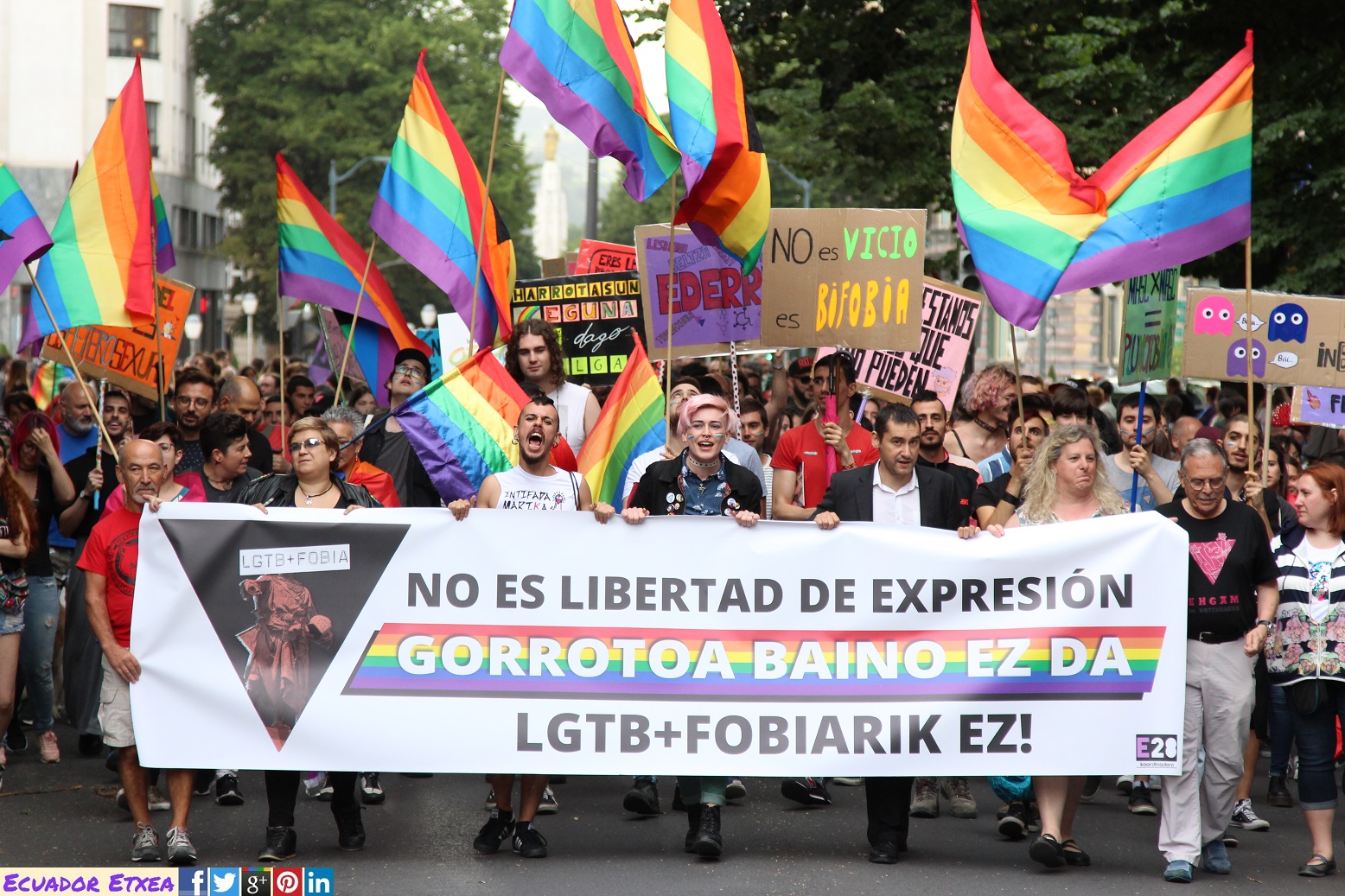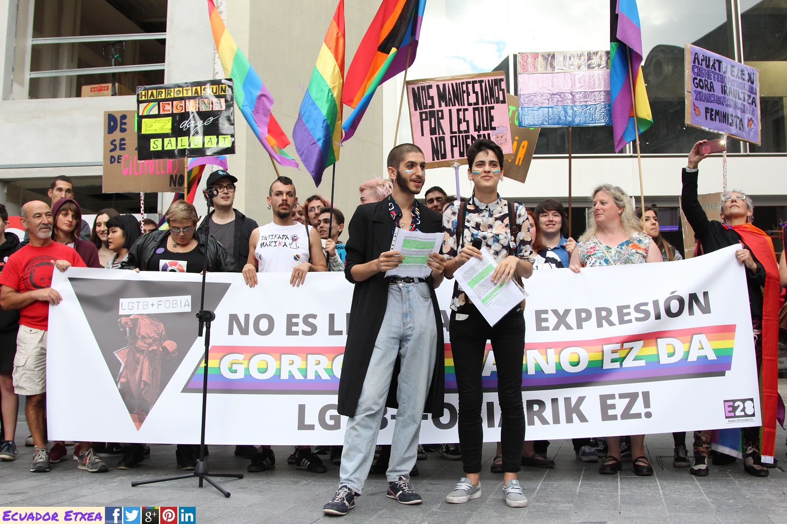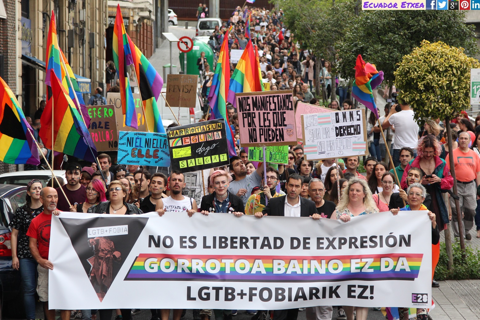 Nos gustaría hacer la reflexión crítica sobre las consecuencias que este tipo de discursos de odio pueden generar, entendiendo que son el preámbulo y el sustento ideológico de los Delitos de Odio por Orientación Sexual e Identidad de Género. Es por ello que hacemos hincapié en la necesidad de organizarnos y empoderarnos como grupo y colectivo LGTB+, para poder así, hacer frente y responder de manera organizada a los discursos de Odio, aquellos que alimentan la fobia hacia todas las personas disidentes de la cisheteronorma. Por eso mismo creemos necesario abrir un debate y un proyecto en relación a una ley LGTB+ integral en Euskal Herria y el estado español.