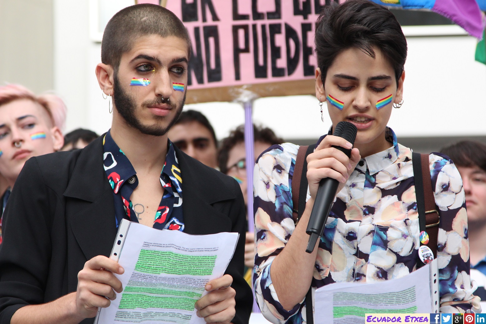 A la vez que fijamos nuestra mirada bajo un foco local, tenemos el deber también de hacer una militancia responsable e internacionalista. Desde aquí queremos mandar nuestra energía y rabia hacia todas las injusticias que seguimos viviendo en el mundo. Queremos recordar el caso de Higui, a todos los hombres gays y bisexuales que están siendo asesinados y torturados por su identidad en Chechenya, a las mujeres trans sobretodo racializadas que son asesinadas constantemente, el poco compromiso ante la necesidad de asilo político a inmigrantes LGTB por parte de gobiernos europeos, como es el caso de Reino Unido, a la extensa e injusta falta de análisis y acción a la hora de proteger a personas oprimidas por varias intersecciones y a todas estas atrocidades que suceden en todas las sociedades. Queremos subrayar la importancia de poner el foco culpable en el cisheteropatriarcado presente y responsable de todos estos asesinatos e injusticias.