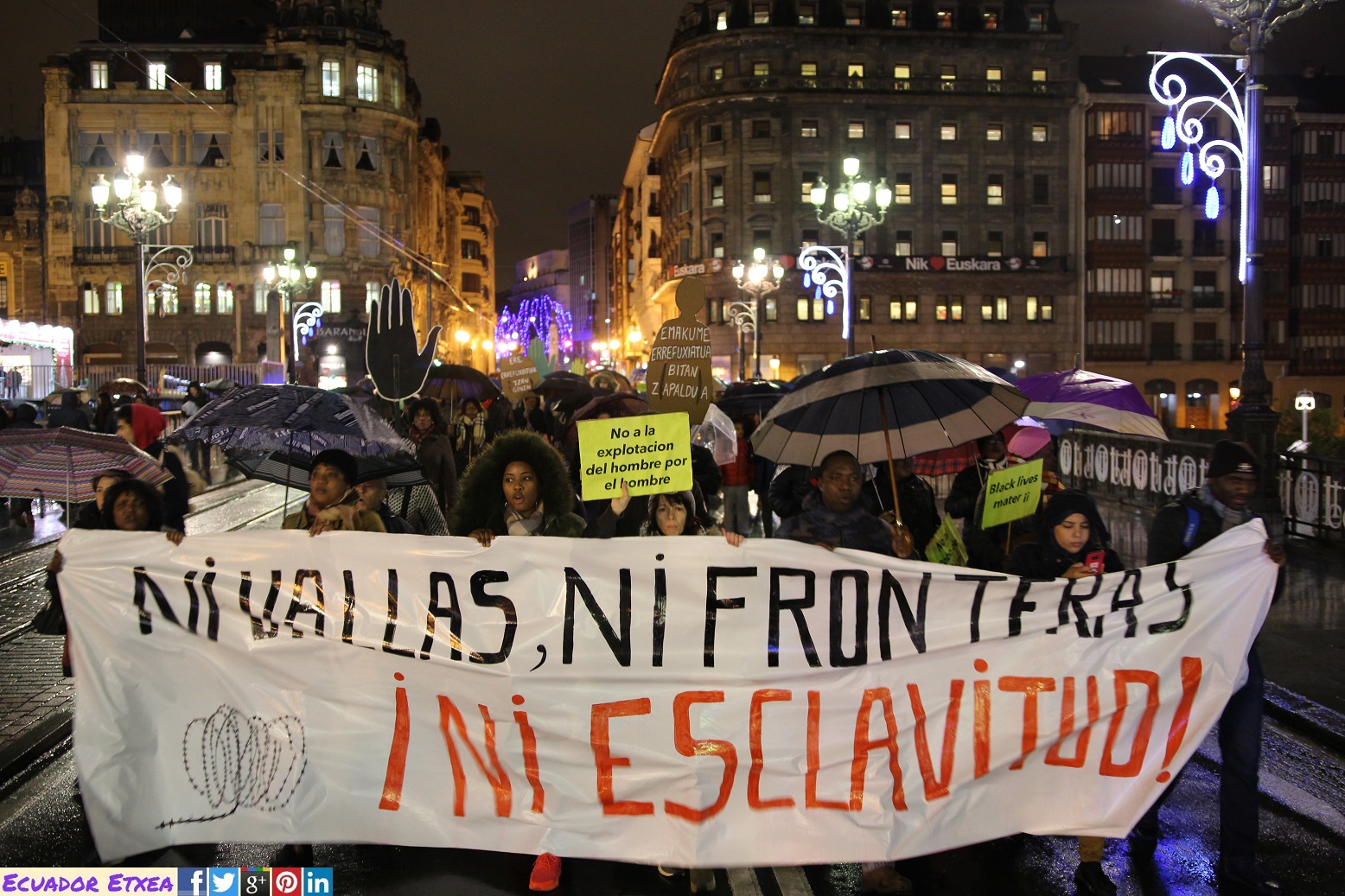 Centenares de personas se han movilizado en Bilbao este lunes 18 de Diciembre convocadas por la Comunidad Africana, Afrodescendientes y Amigos en Euskadi, con motivo del día internacional de las personas migrantes para manifestar que: