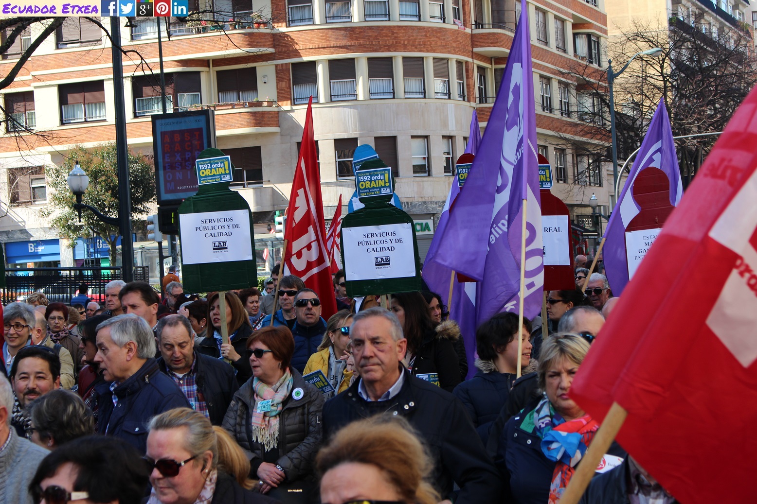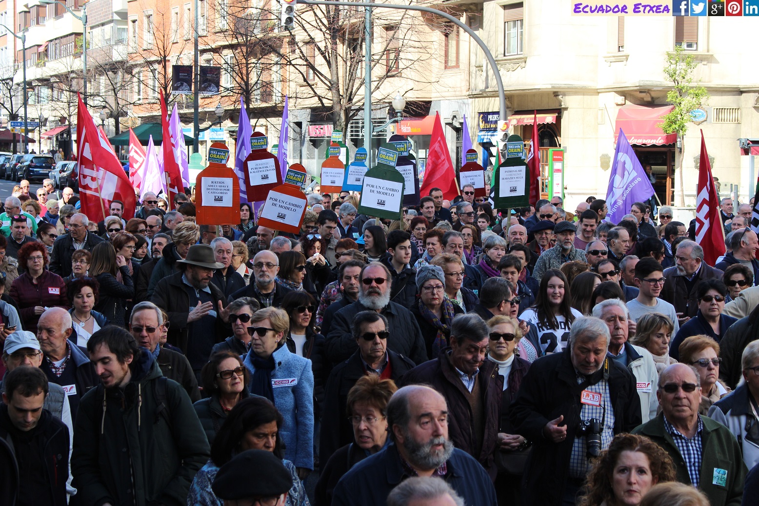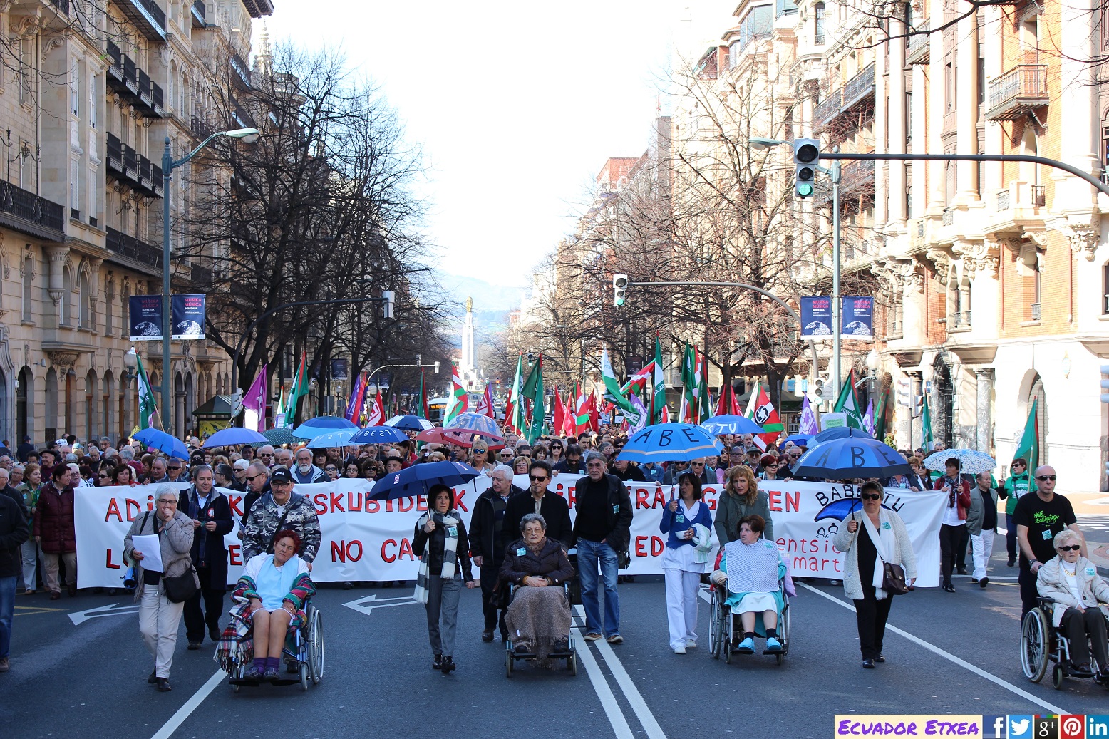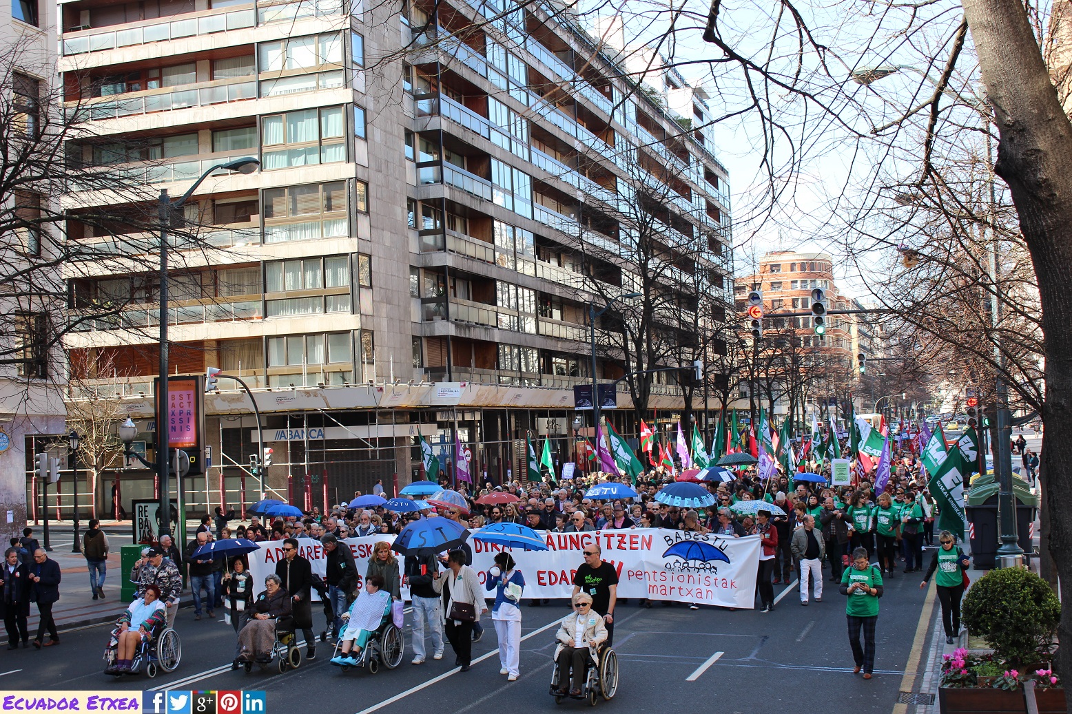 Este domingo 26 de febrero, la plataforma de familiares Babestu y Pentsionistak Martxan de Bizkaia, con el apoyo de CCOO, CGT, ELA, ESK, LAB, UGT, USO, SATSE, STEILAS, la Carta de los Derechos Sociales de Euskal Herria y demás agentes sociales, han realizado una manifestación que partió desde Sagrado Corazón en Bilbao, bajo el lema «Los derechos de las personas no caducan con la edad», con el fin de exigir a la Diputación de Bizkaia «soluciones que no eternicen» el conflicto en las residencias.