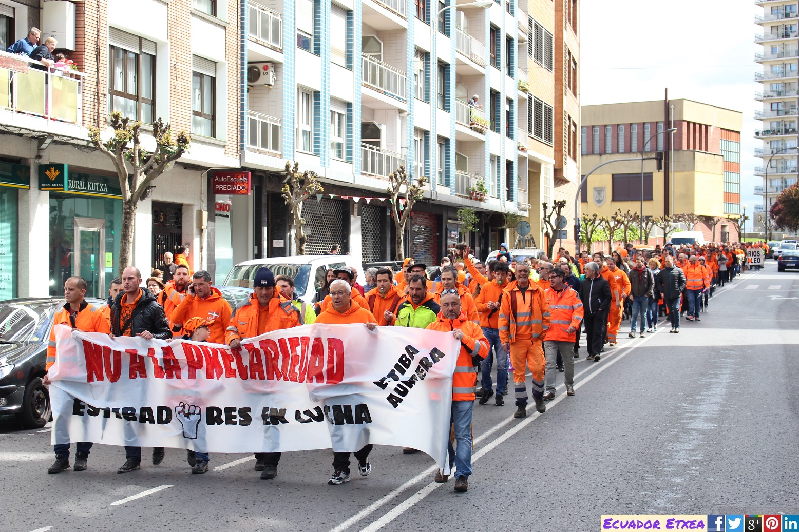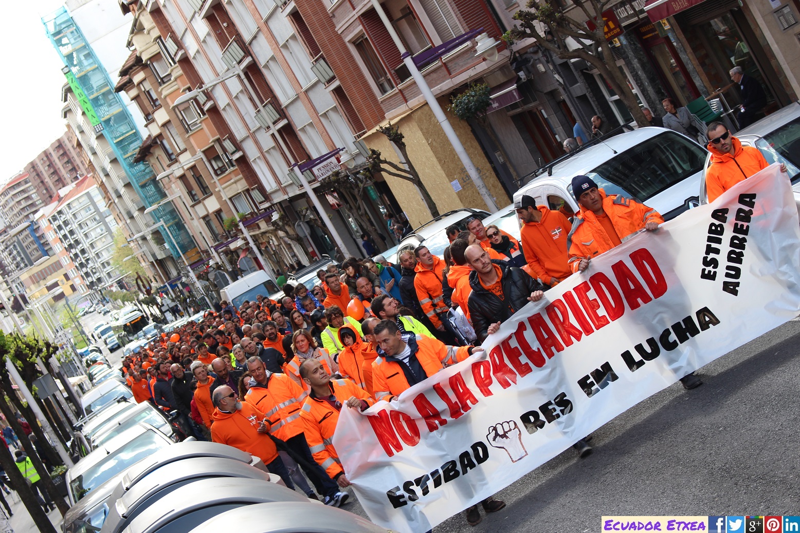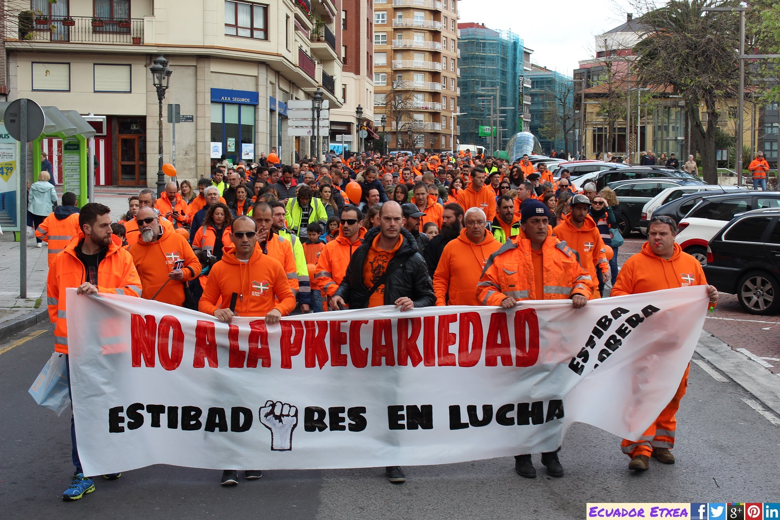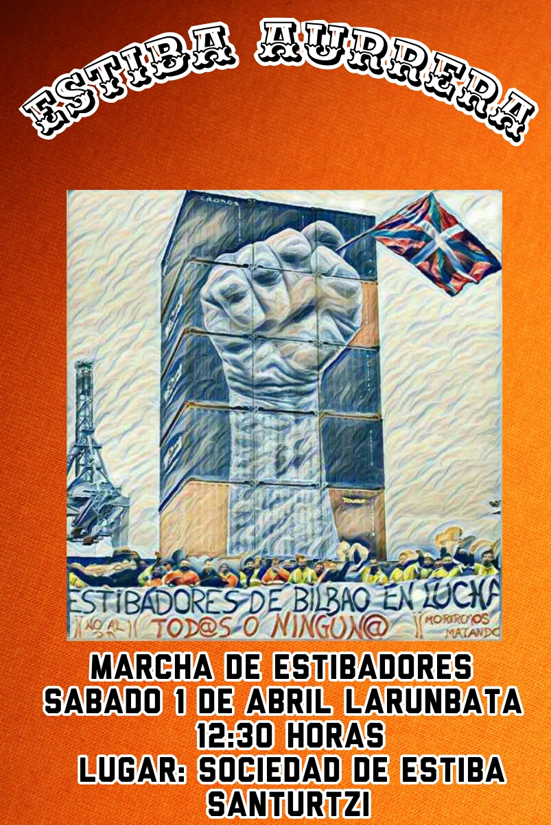 Esta mañana de sábado 1 de abril, más de un centenar de estibadores, representantes de los comités de empresa de BilboEstiba SAGEP, de las empresas estibadoras Noatum, Bergé, SLP y Toro y Betolaza, y las secciones sindicales de OUTPB, UGT, ELA, LAB y KAIA, se han movilizado en el Puerto de Santurtzi, para protestar por el Real Decreto que pretende liberalizar este sector.
