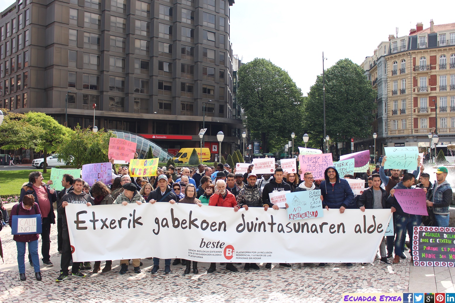 Este jueves, 27 de abril, la Plataforma Beste Bi ha realizado en Bilbao una nueva marcha por la dignidad de las personas sin hogar. Los organizadores han querido hacer ver que las personas sin hogar son parte de esta sociedad, están entre nosotros, aunque no nos guste verlo. El problema es que viven situaciones que parecen estancarse en lugar de desaparecer.