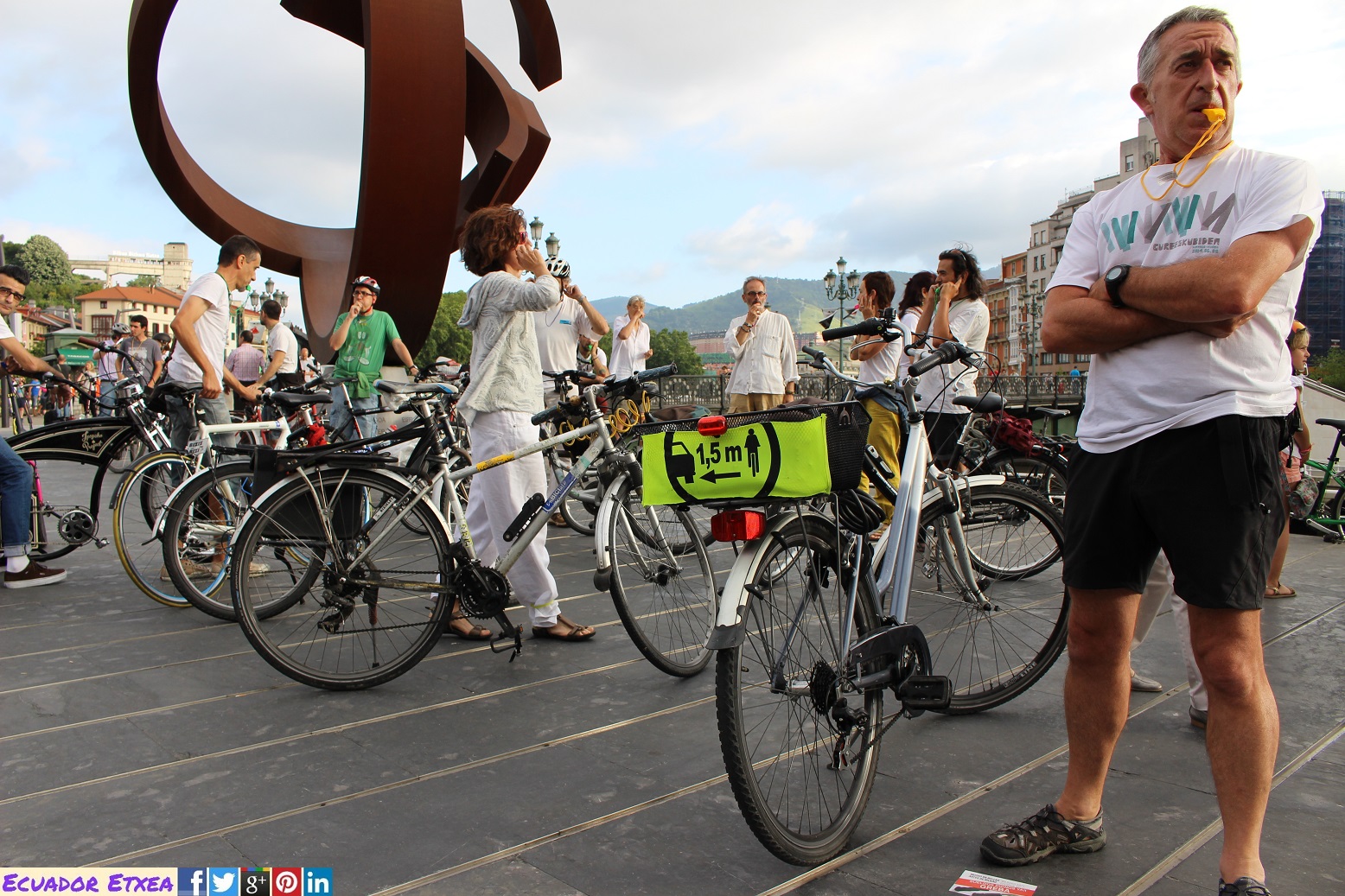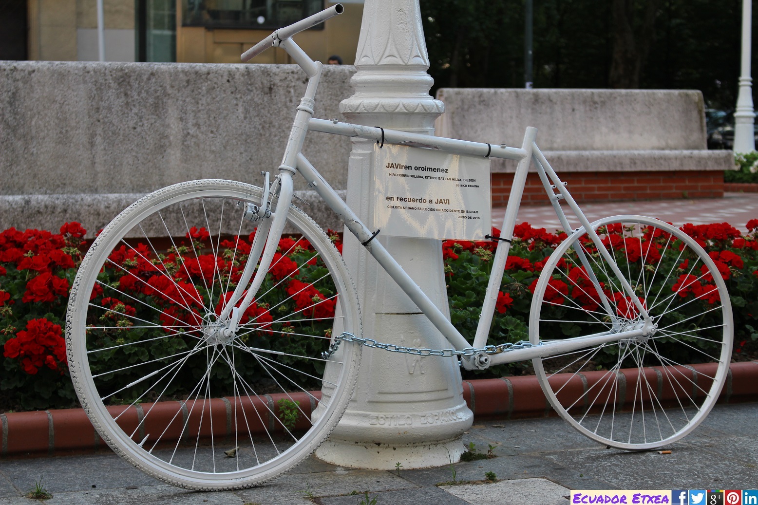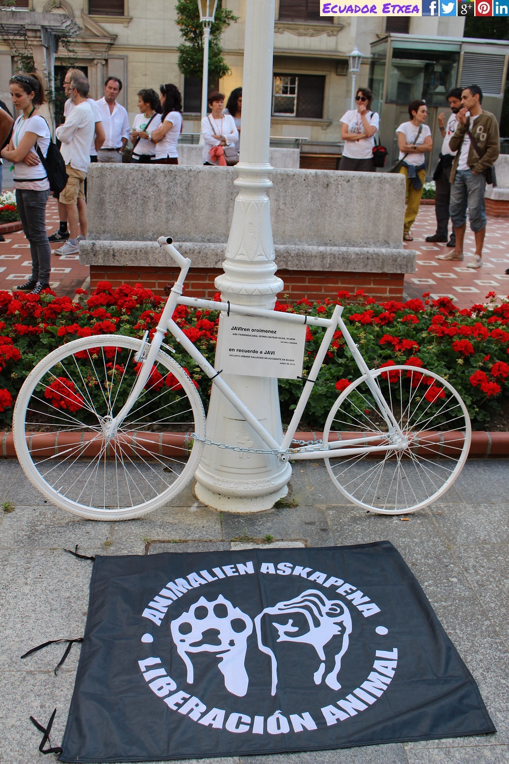 Vístete de blanco y participa en la masa crítica de este jueves 30, una masa crítica especial en recuerdo de Javi, ciclista urbano fallecido tras un accidente en la Gran Vía de Bilbao. Biziz Bizi, la Asociación de ciclistas urban@s de Bilbao, ha colocado una bicicleta blanca en su recuerdo en el lugar en el que tuvo lugar el accidente. Hemos lleva silbatos para hacernos oír frente a un ayuntamiento que permanece sordo.