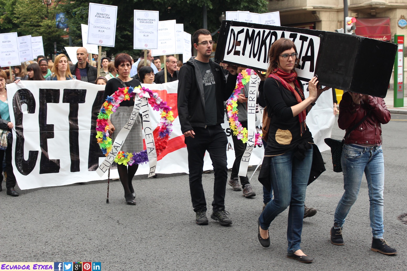 La Carta de Derechos Sociales de Euskal Herria y las campañas contra el TTIP y el CETA de Araba, Bizkaia, Gipuzkoa y Nafarroa han organizado una serie de movilizaciones contra el CETA que se insertan dentro de un movimiento existente a ambos lados del Atlántico en contra del acuerdo de libre comercio entre la Unión Europea y Canadá denominado CETA.