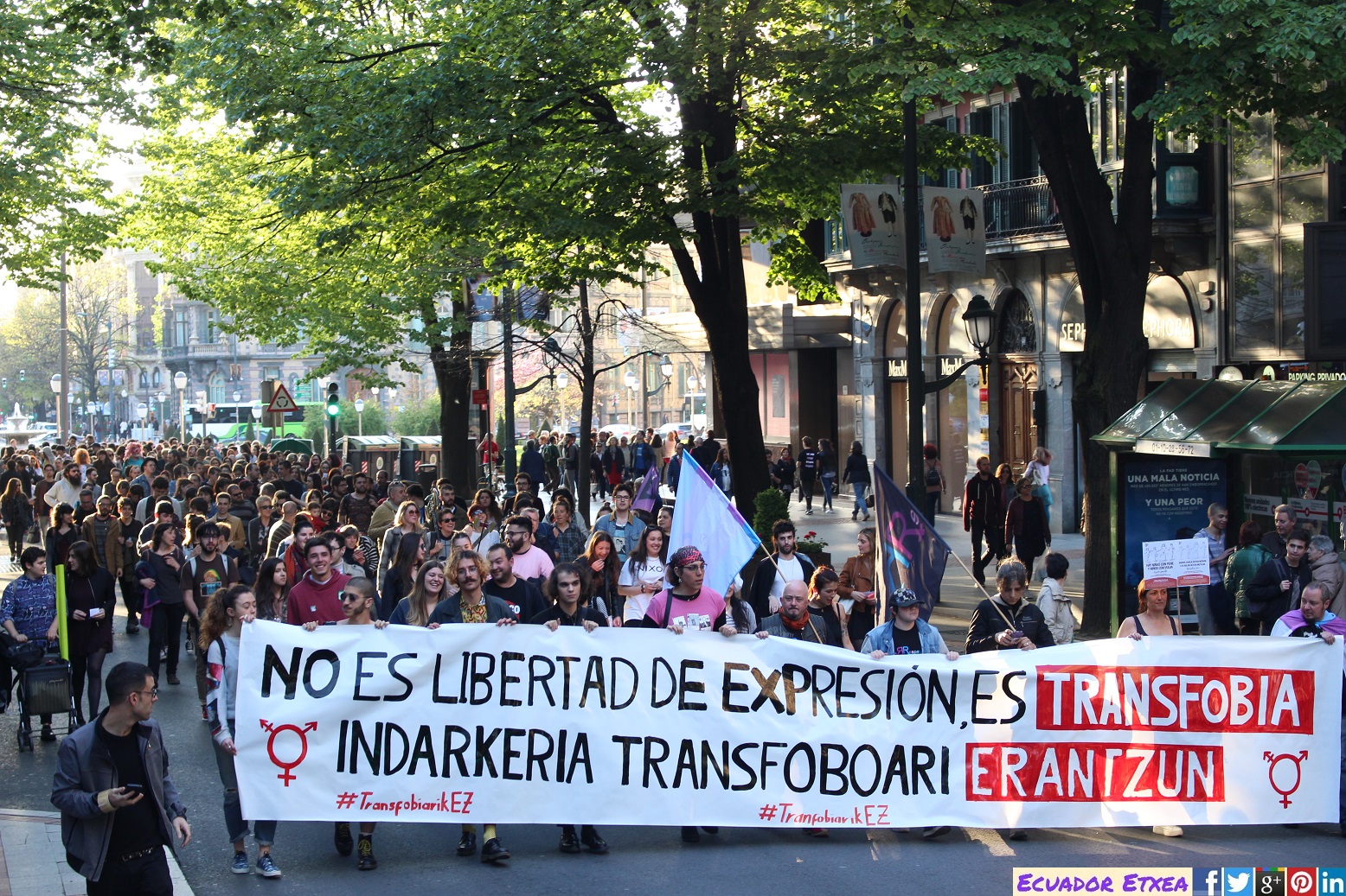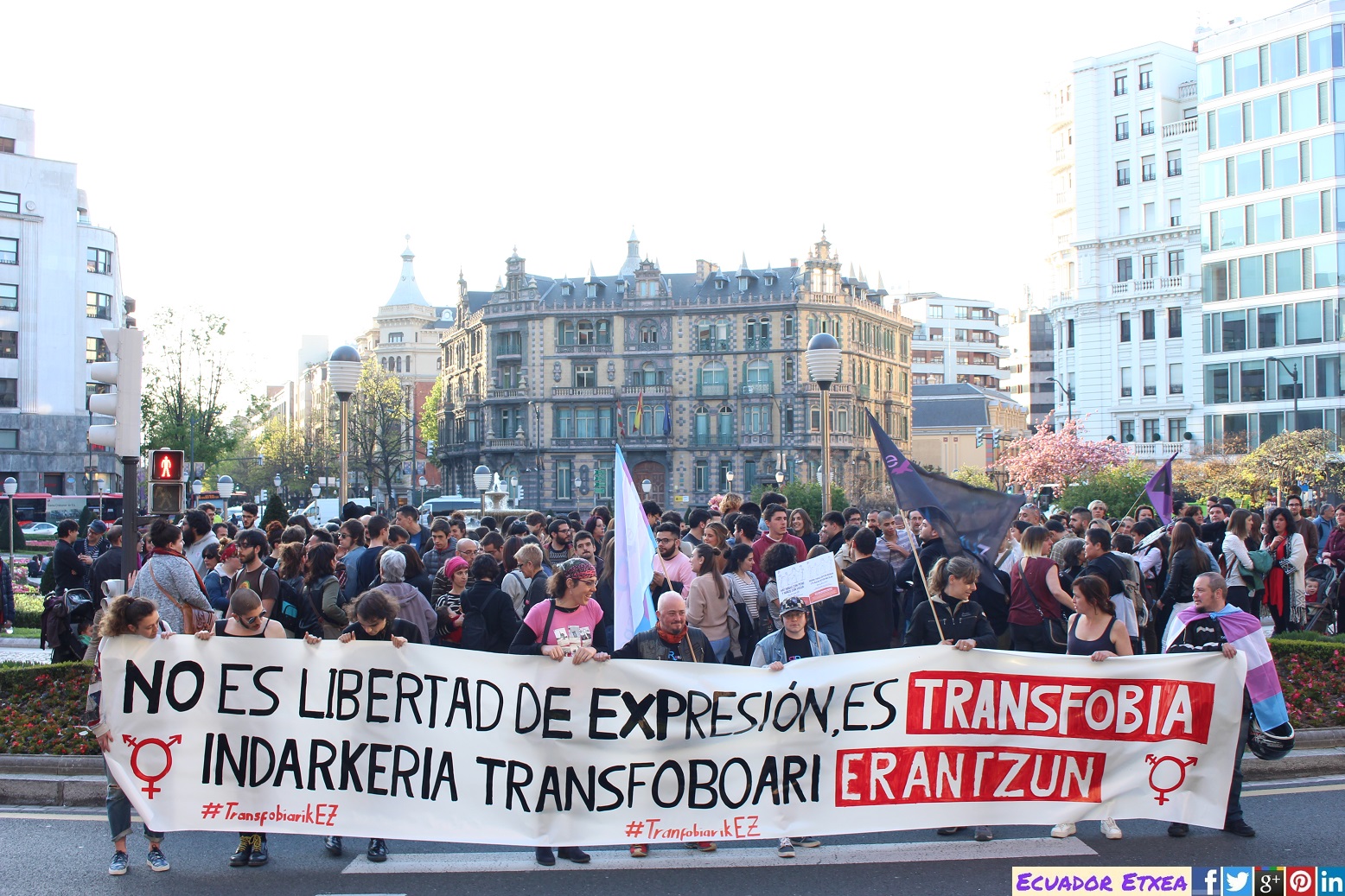 Más de un centenar de personas se han manifestado esta tarde en las calles de Bilbao contra la transfobia y el discurso de odio que promueve la agrupación Hazte Oír, entre otras. Las personas y organizaciones convocantes manifiestan que ha llegado el momento de dar respuesta y demostrar que Euskal Herria es un hogar seguro para las personas trans y que la transfobia no es bievenida. Así también hacen un llamamiento a las instituciones para que tomen en consideración sus vidas y necesidades, de una vez por todas. #TransfobiarikEZ