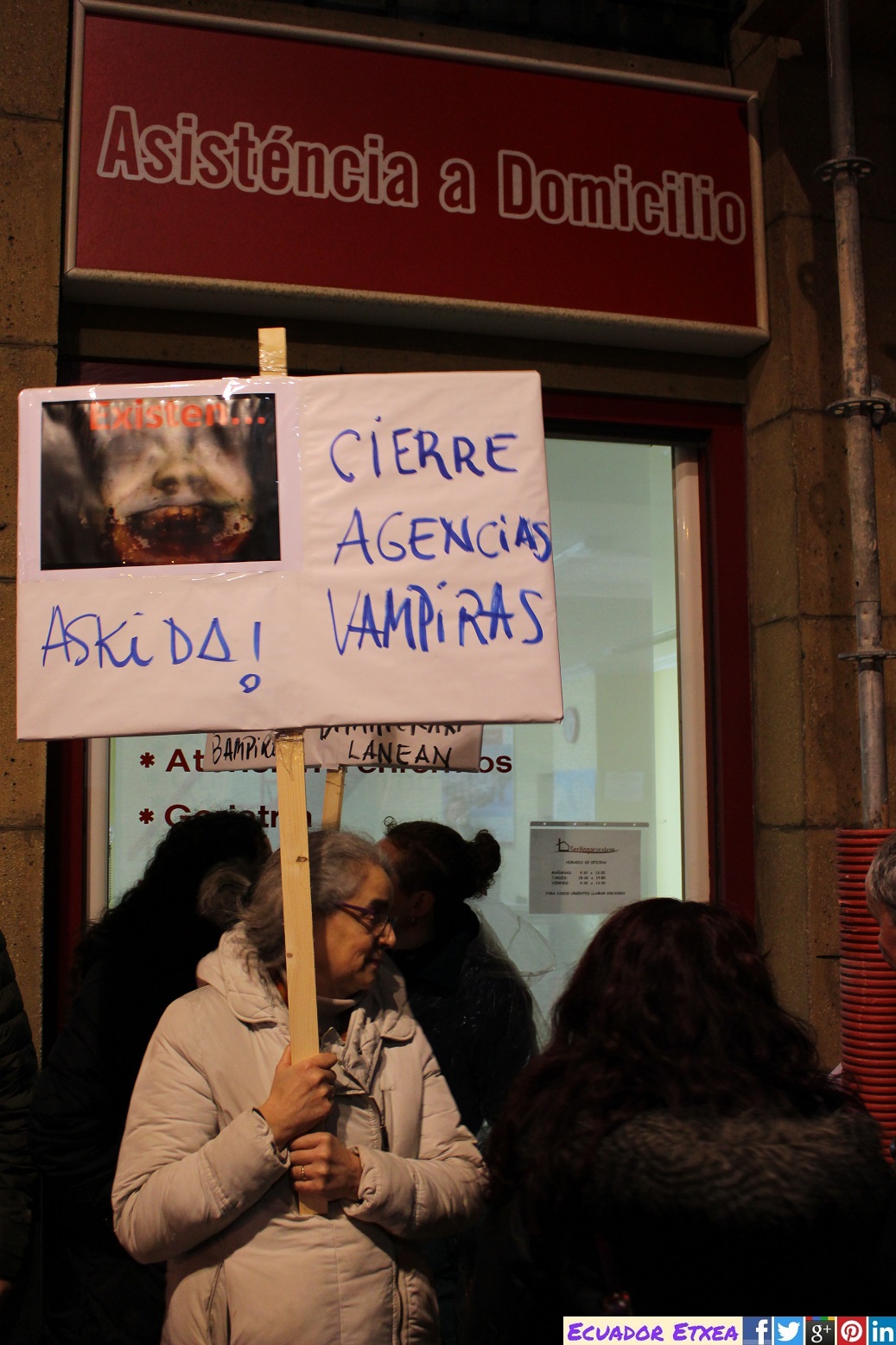 La Asociación de trabajadoras de hogar de Bizkaia ATH-ELE junto con sindicatos y colectivos de mujeres y feministas han convocado una concentración frente a la agencia SERHOGAR SYSTEM para denunciar las precarias e ilegales condiciones laborales de las trabajadoras del hogar.