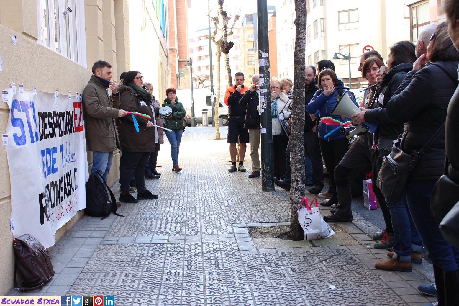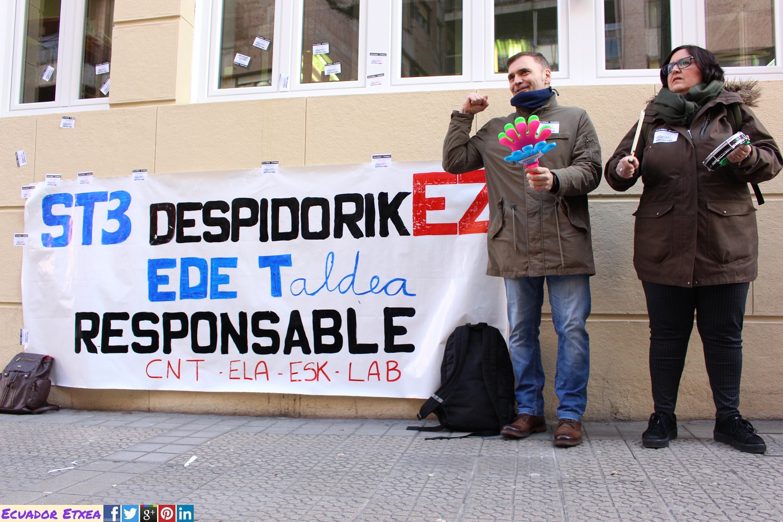 Una veintena de trabajadoras y trabajadores de ST3 Elkartea junto con sus compañeras de EDE taldea, se han vuelto a concentrar este miércoles 7 de marzo, esta vez frente a la sede de la Fundación EDE (C/Simón Bolívar, 8-Bilbao) y con el apoyo de los sindicatos ESK, CNT, ELA y LAB, para continuar con la huelga indefinida iniciada desde hace 2 semanas en defensa de sus puestos de trabajo y para denunciar que llevan años viviendo un auténtico calvario por culpa de la dirección de EDE Taldea que ya desde el año 2014 quería liquidarlos, a pesar de ser un grupo laboral que da beneficios.