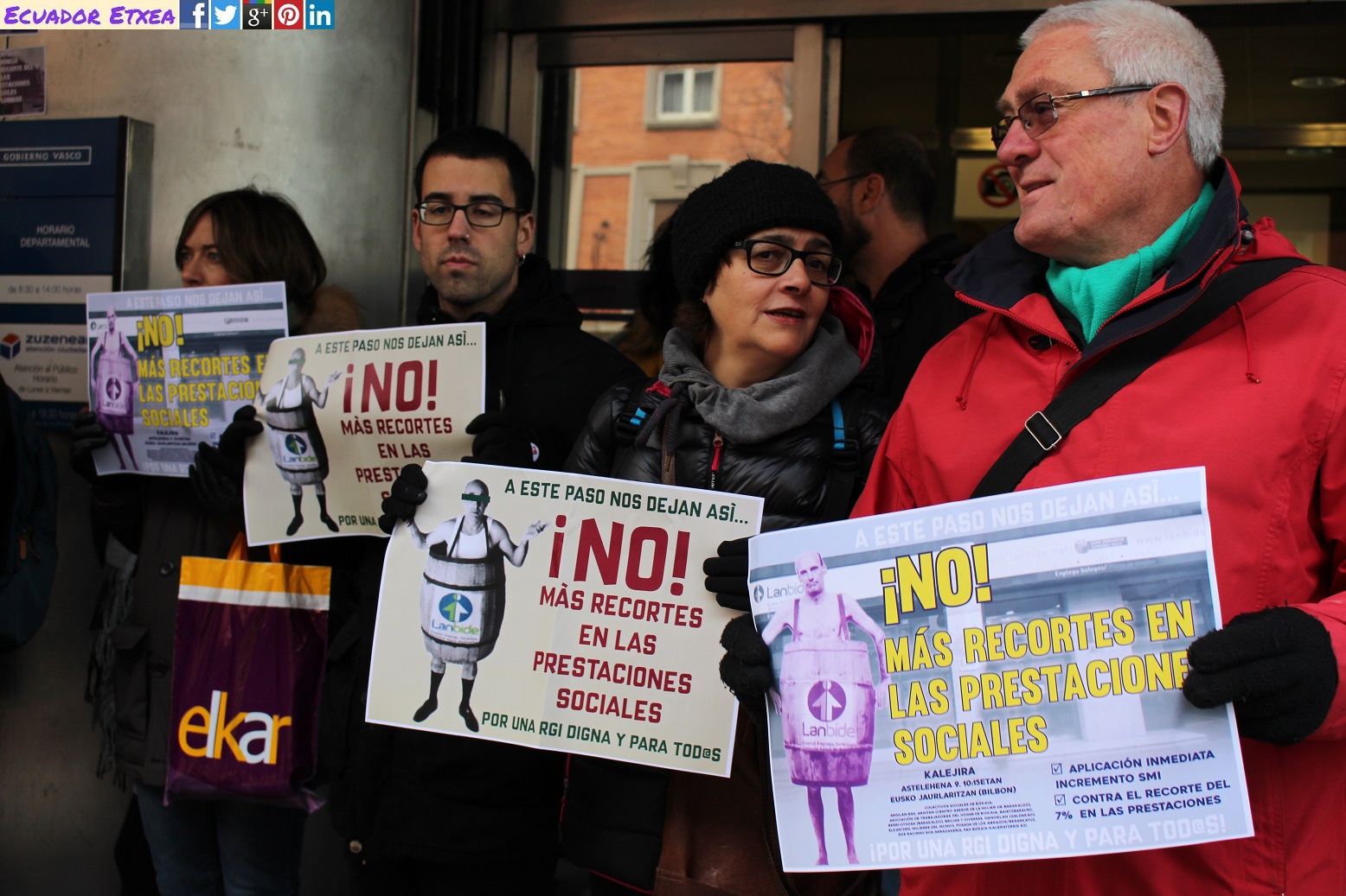 Por otro lado, a través de esta iniciativa, también queremos denunciar que desde los presupuestos del año 2012, el Gobierno Vasco ha recortado todos los años en un 7% la cuantía de las prestaciones gestionadas por Lanbide: Complemento de Pensiones, Incentivos al empleo, Renta de Garantía de Ingresos, Prestación Complementaria de Vivienda. Cinco años después, se siguen manteniendo estos recortes que machacan especialmente a los colectivos afectados por los desahucios, pobreza y eventualidad en el empleo.